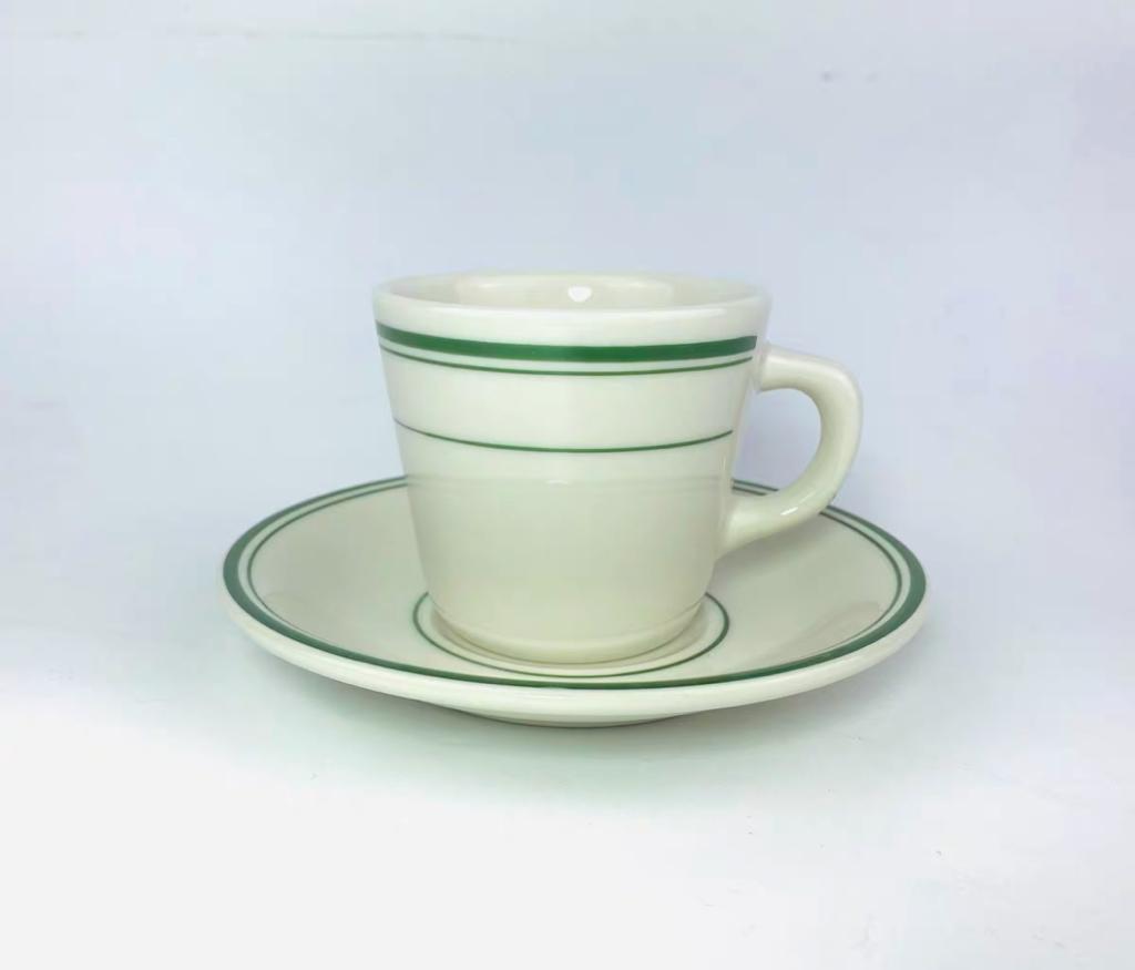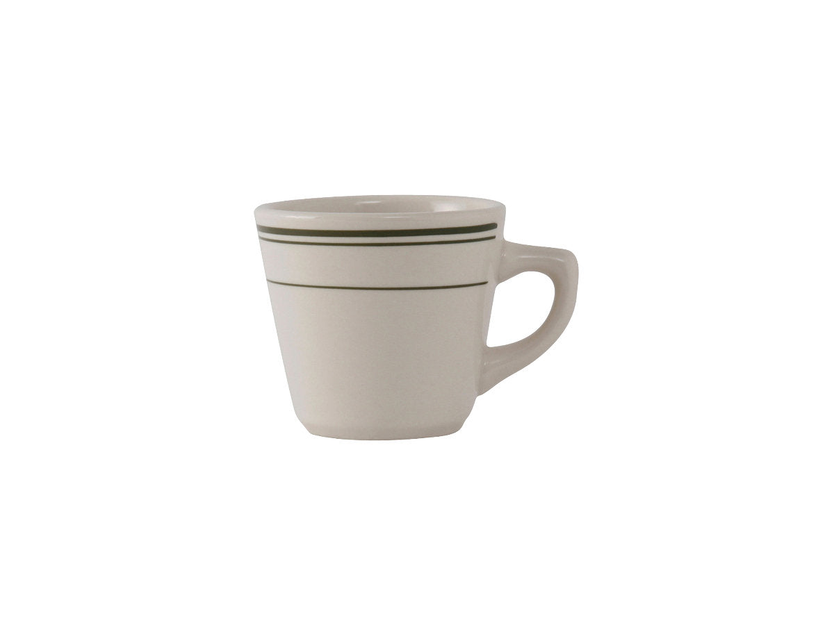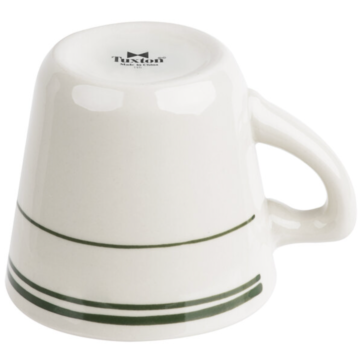 This coffee set is part of Tuxton tableware's timeless cream and green Green Bay collection reminiscent of traditional American diners. Most commonly used in restaurants, this ceramic ware collection is designed for heavy duty use and easy cleaning. Microwave, dishwasher, freezer and oven safe up to 500f/260c