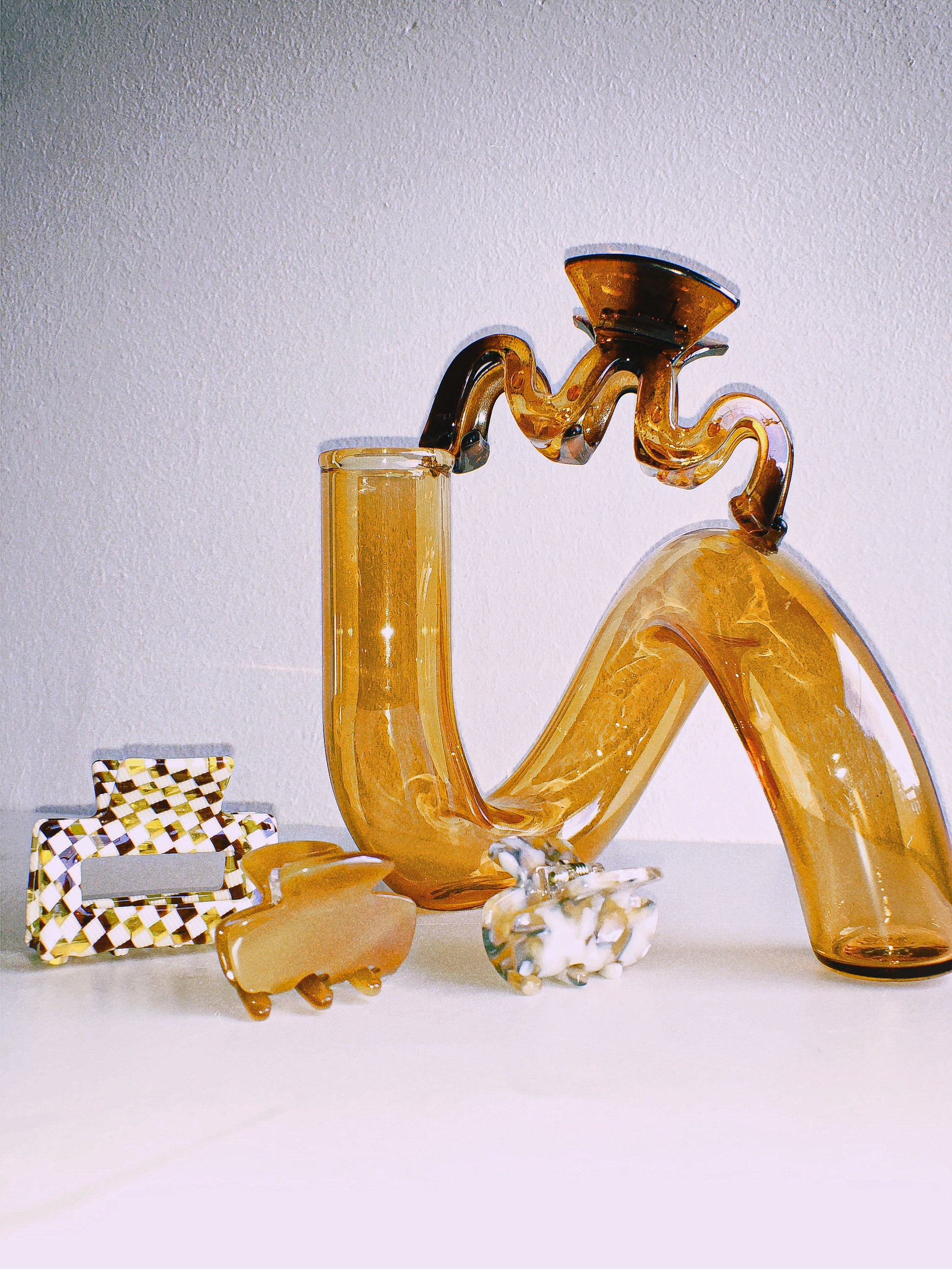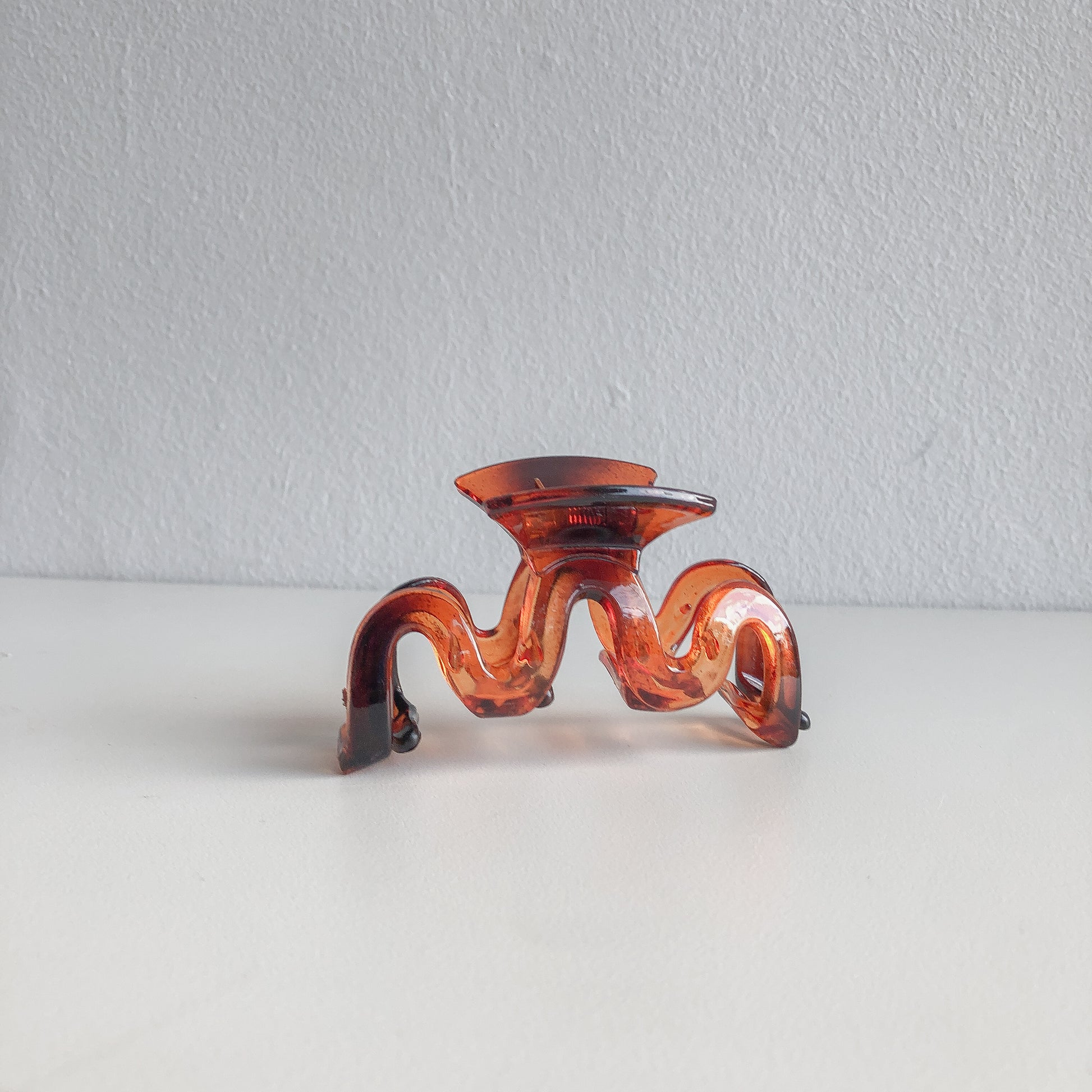 The Amber Squiggle Hair Claw is made of 100% acetate and measures 9cm across.