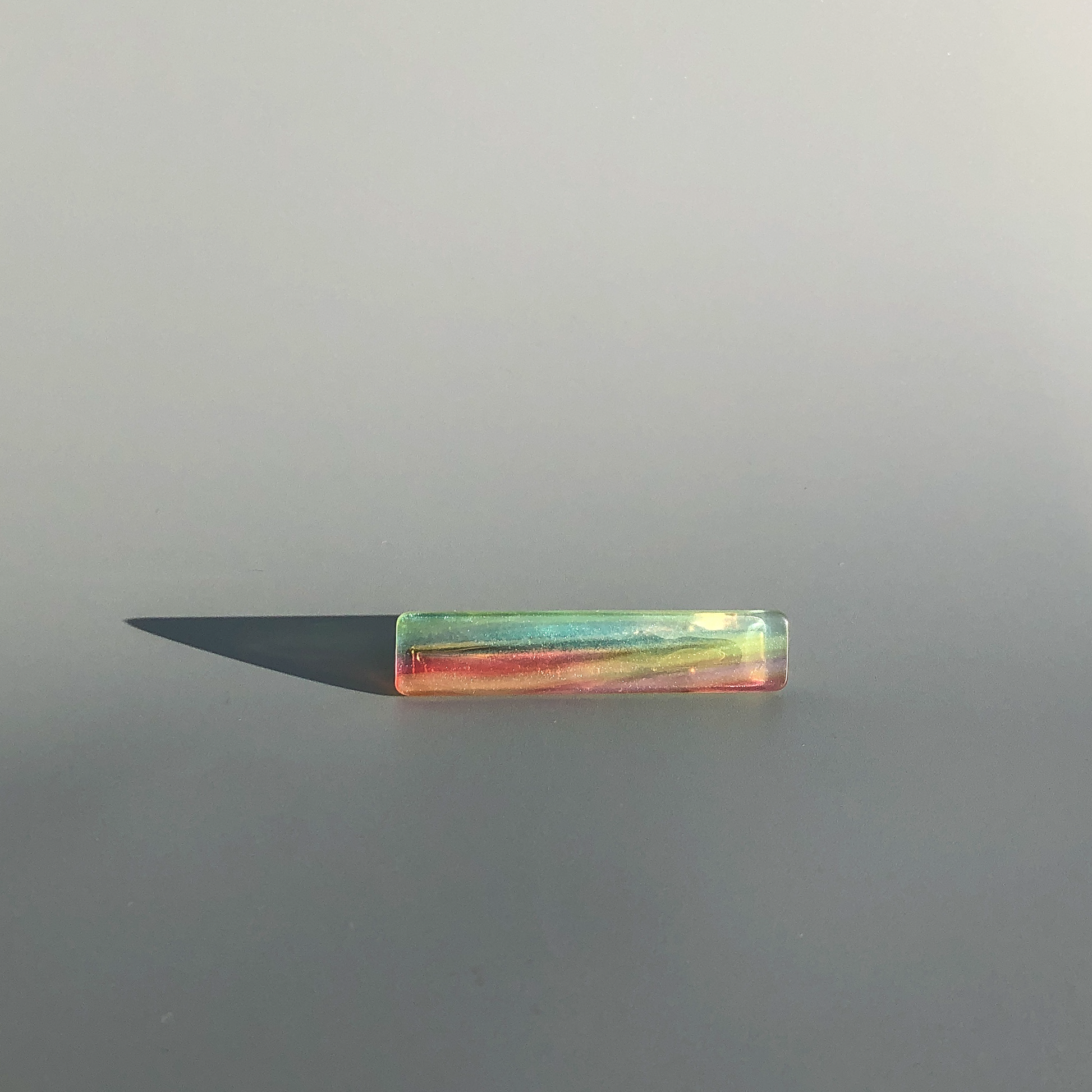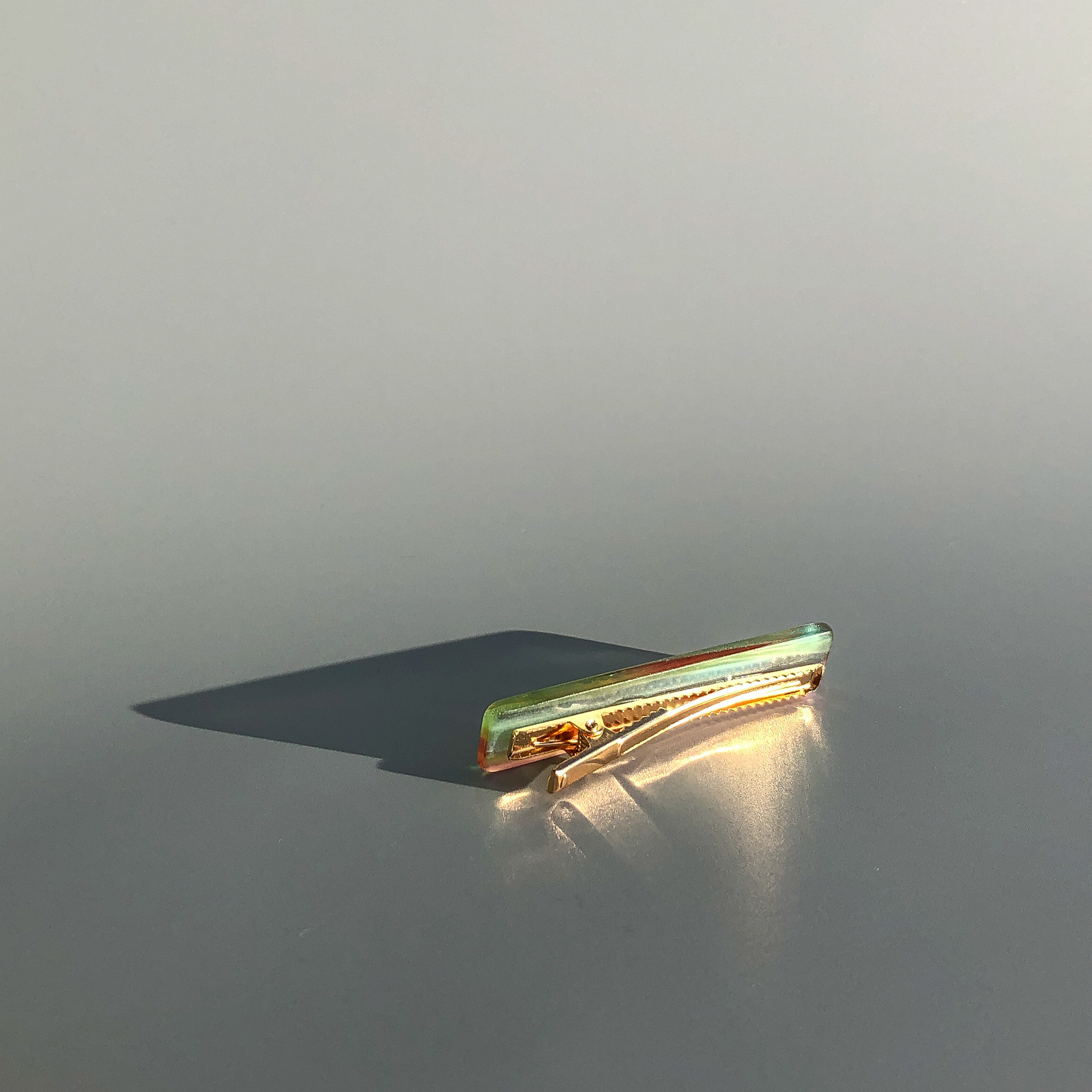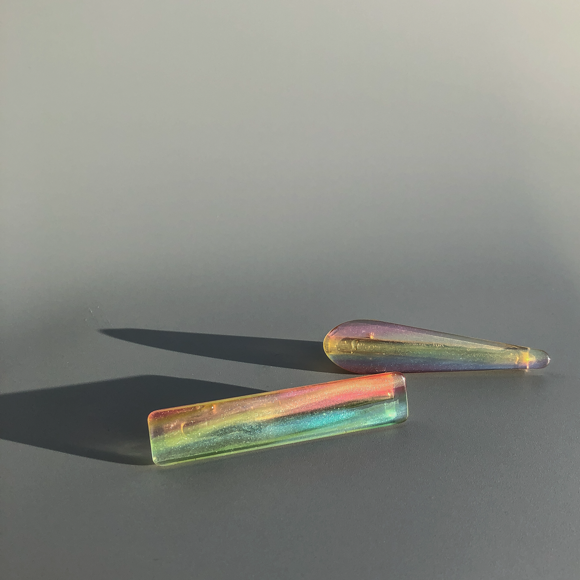 They are made of Rainbow-hued Acetate and measure 6.5cm x 1 cm.