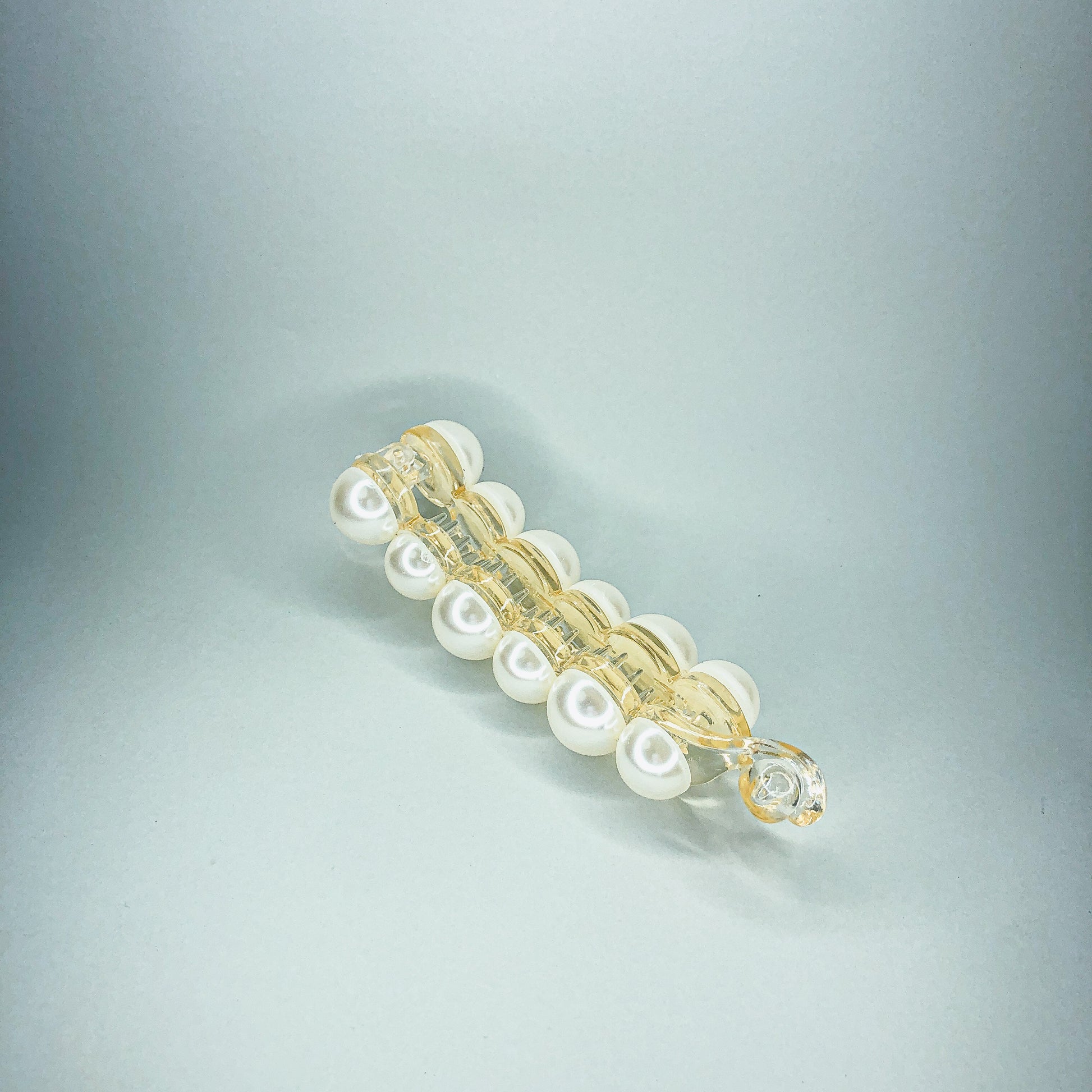 The Banana Hair Grip in Pearl is made of 100% acetate and large faux pearls.