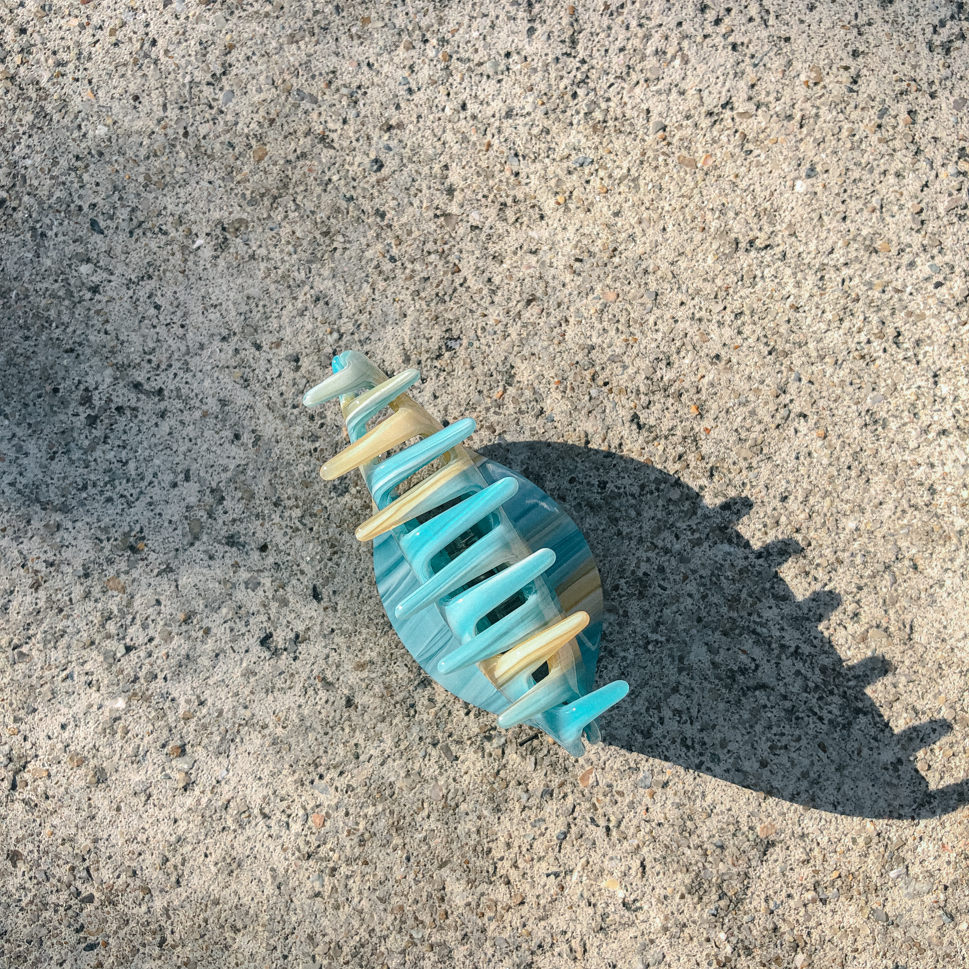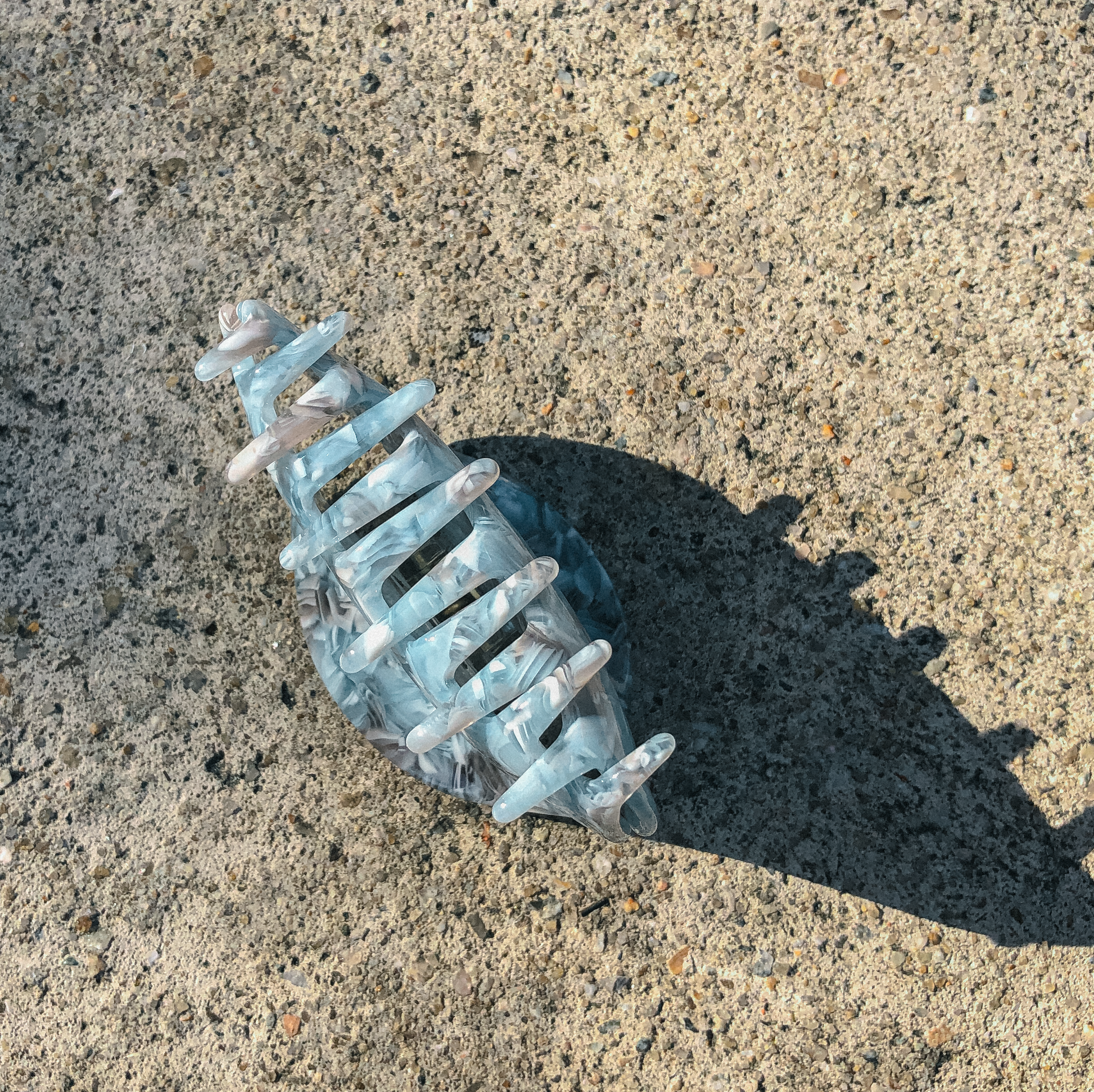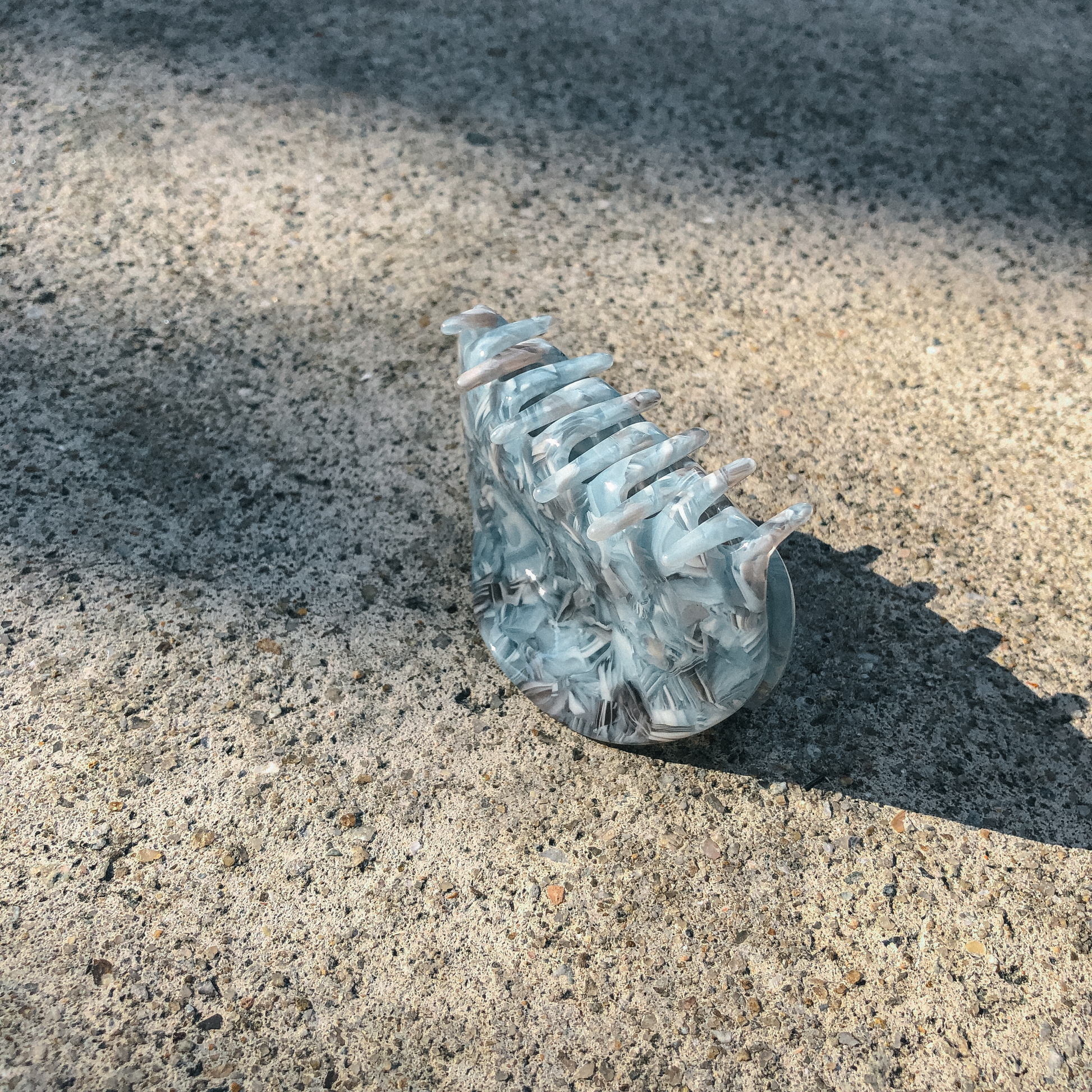 This 50s inspired Blue Granite Claw comes with a semi-gloss finish in grey, blue and white acetate and is perfect for medium-medium thick hair. The rounded acetate teeth ensure that it is gentle on your hair.