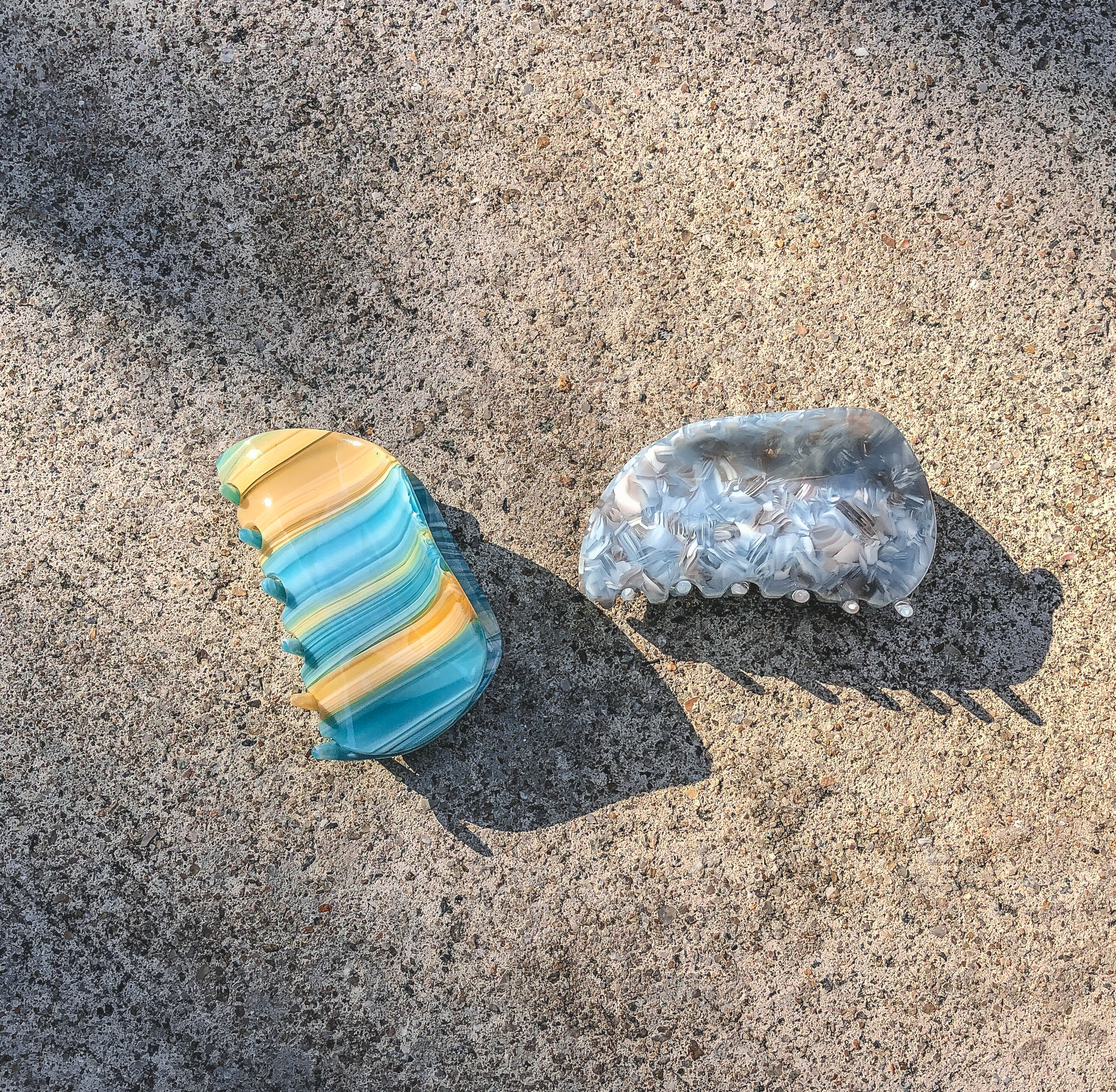 Made with biodegradable acetate, this collection of neutral toned hair claws come in a variety of finishes. Each hairclaw is handmade, patterns & measurements will slightly vary according to batch.