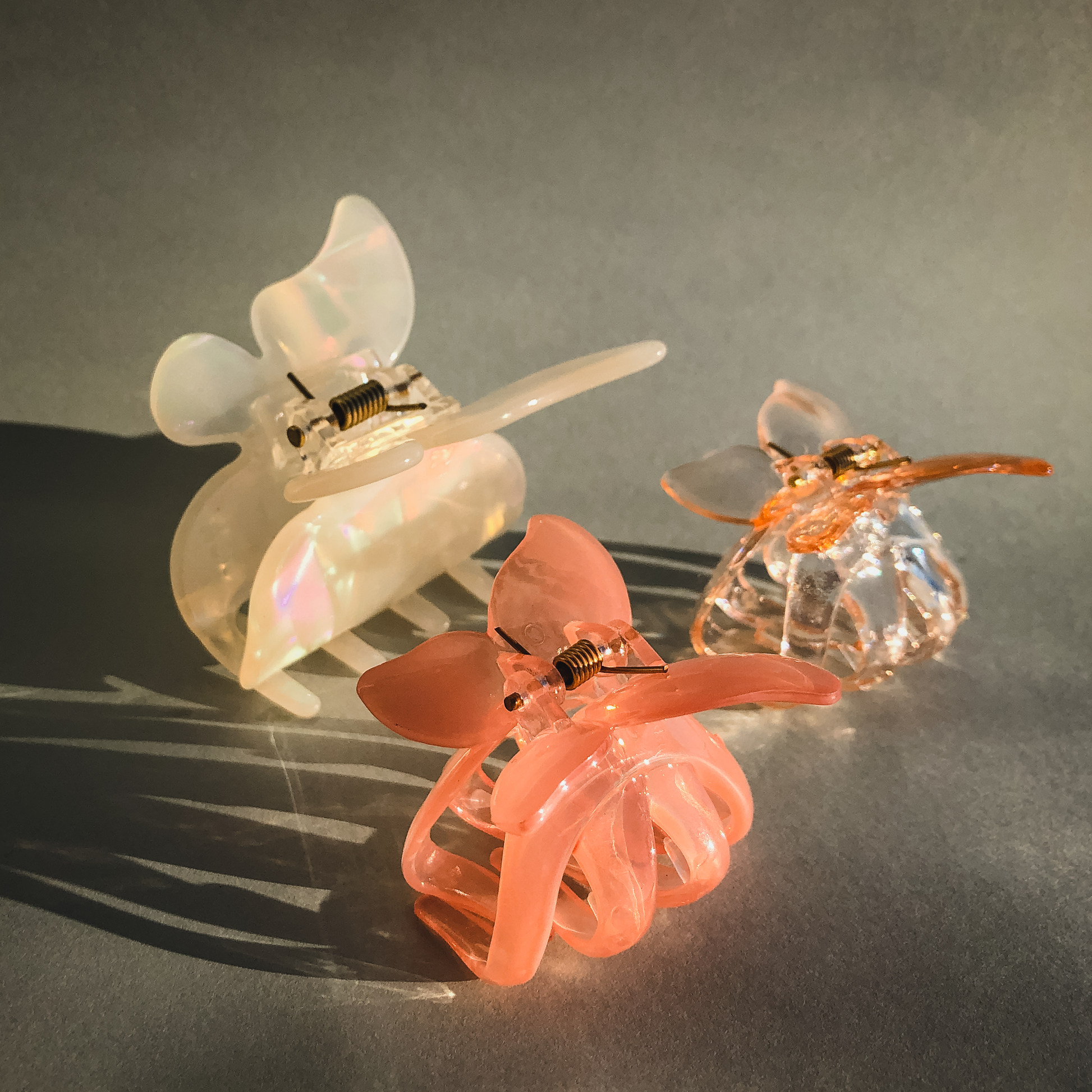 The Calista Butterfly Hair Claw are a new addition to our retro acetate collection of hair accessories. The Clear Coral Butterfly gives with any outfit a romantic pop of colour.