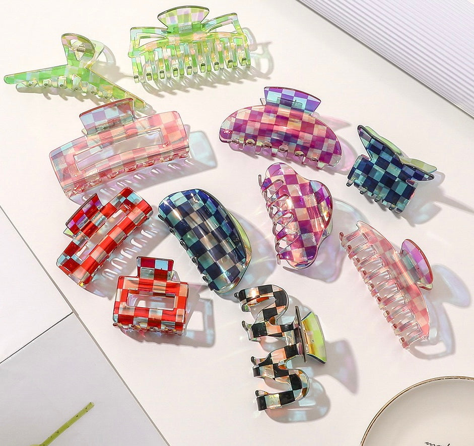 The Chessboard Hair Claw is a bold black & white checkered hair claw measuring 8cm by 4.5cm. Available in Black, Brown, Purple, Pink, Green or Blue checkers.