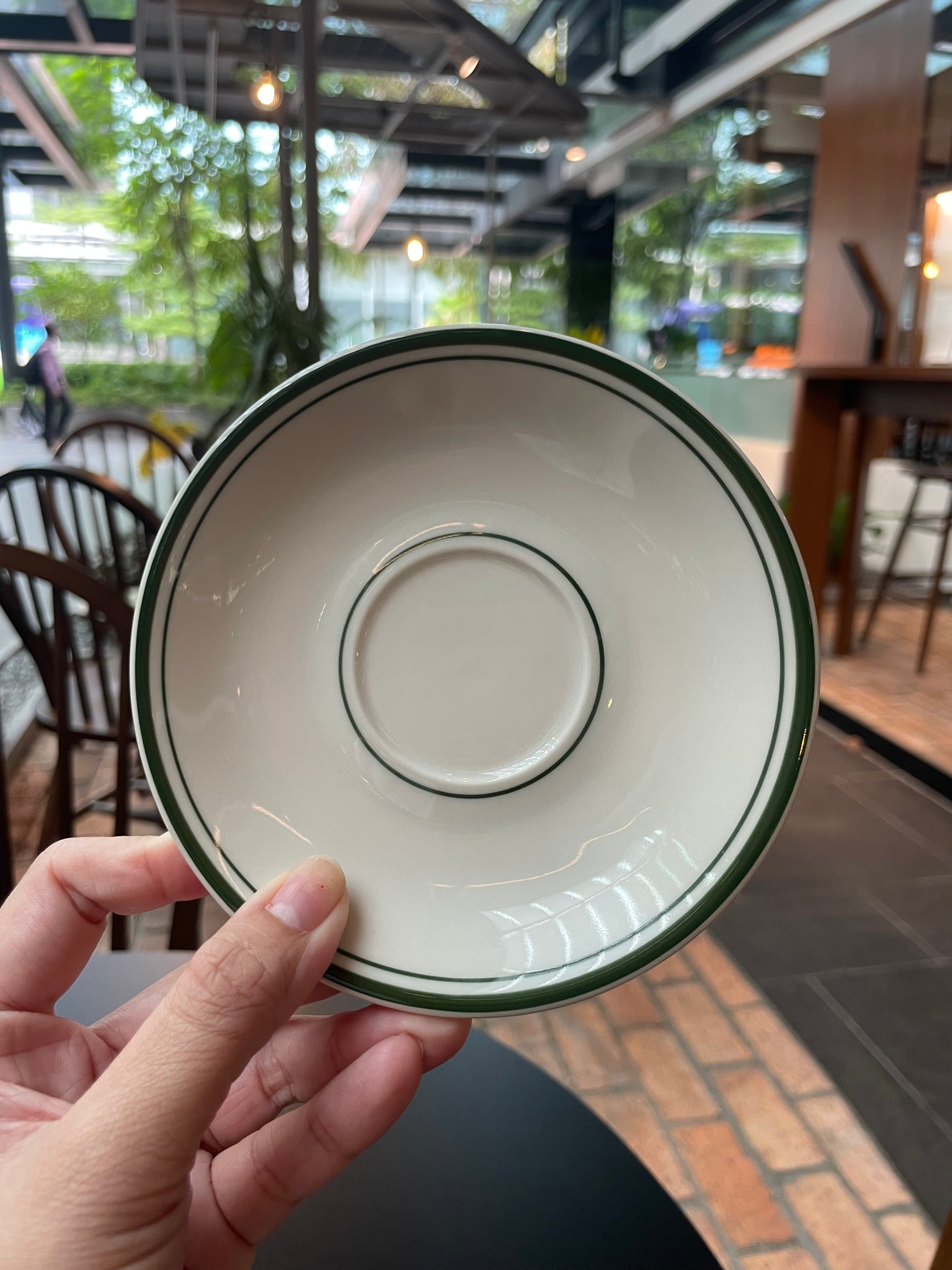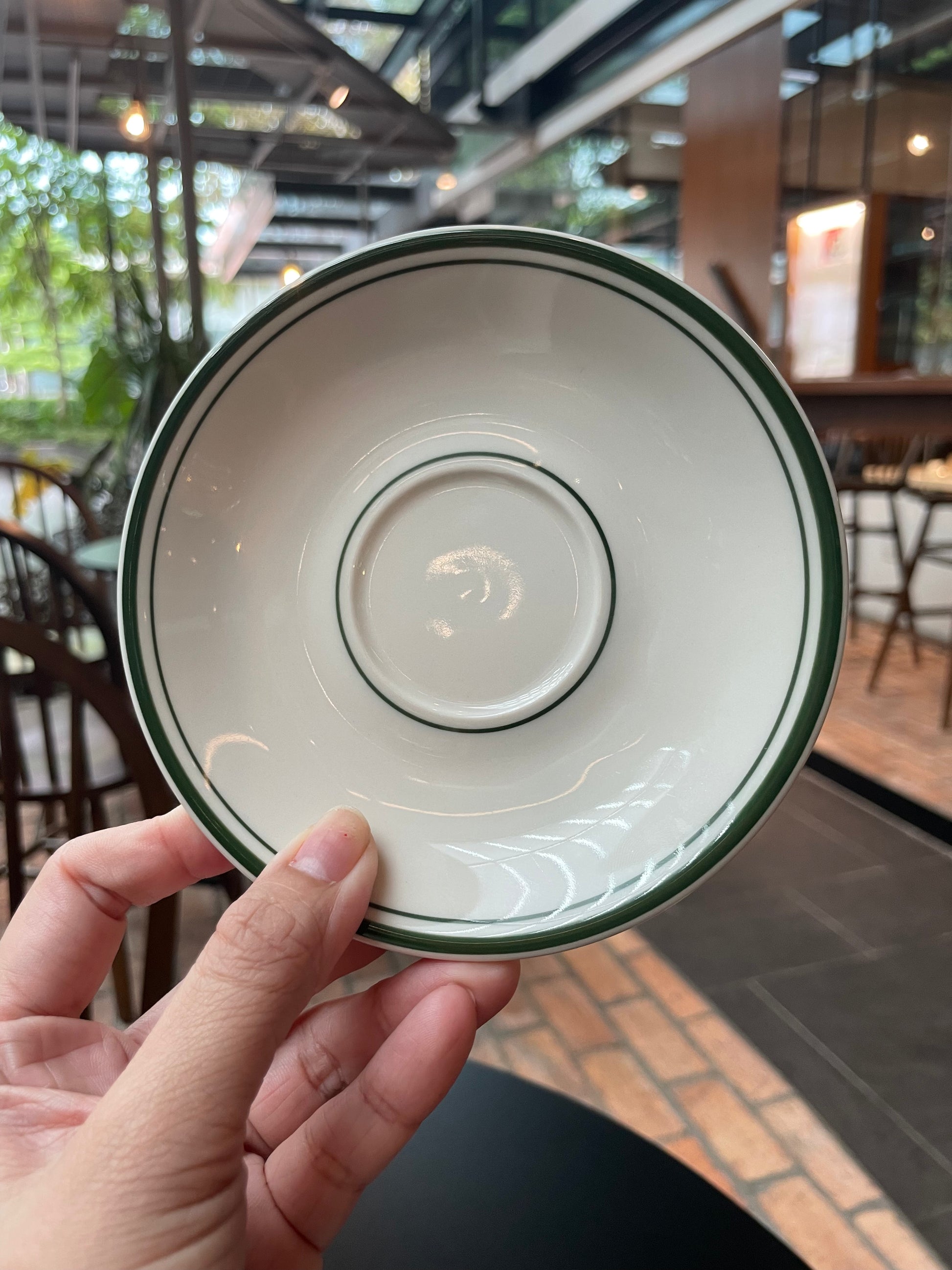 Classic Tuxton American diner coffee set with rim print (green band) thick and durable table wares