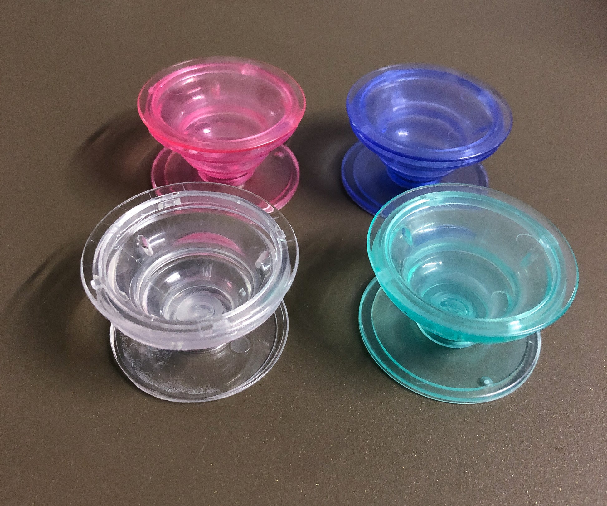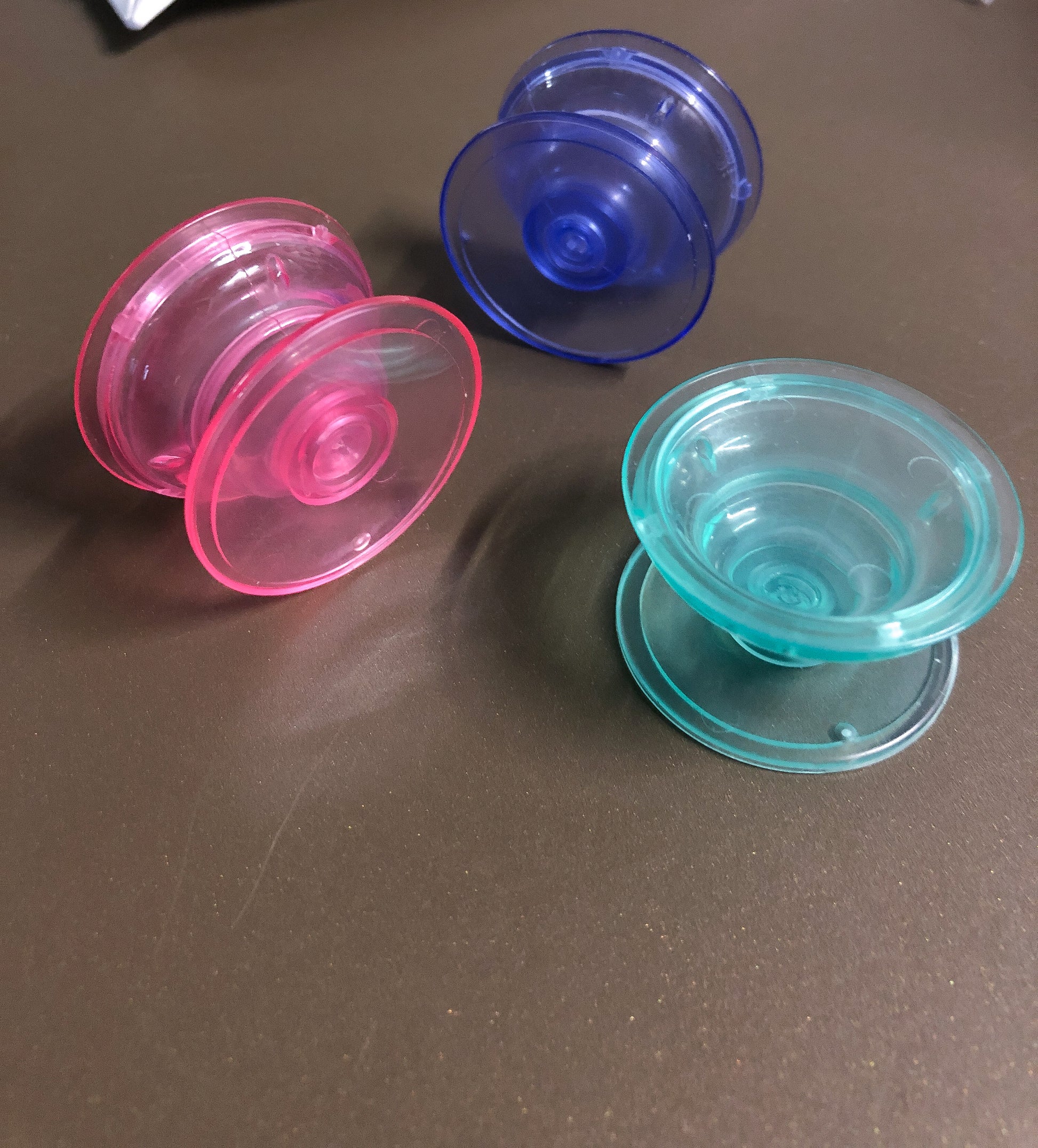 Clear pop sockets and phone grips with customisable tops that can be easily removed and replaced or used on its own.