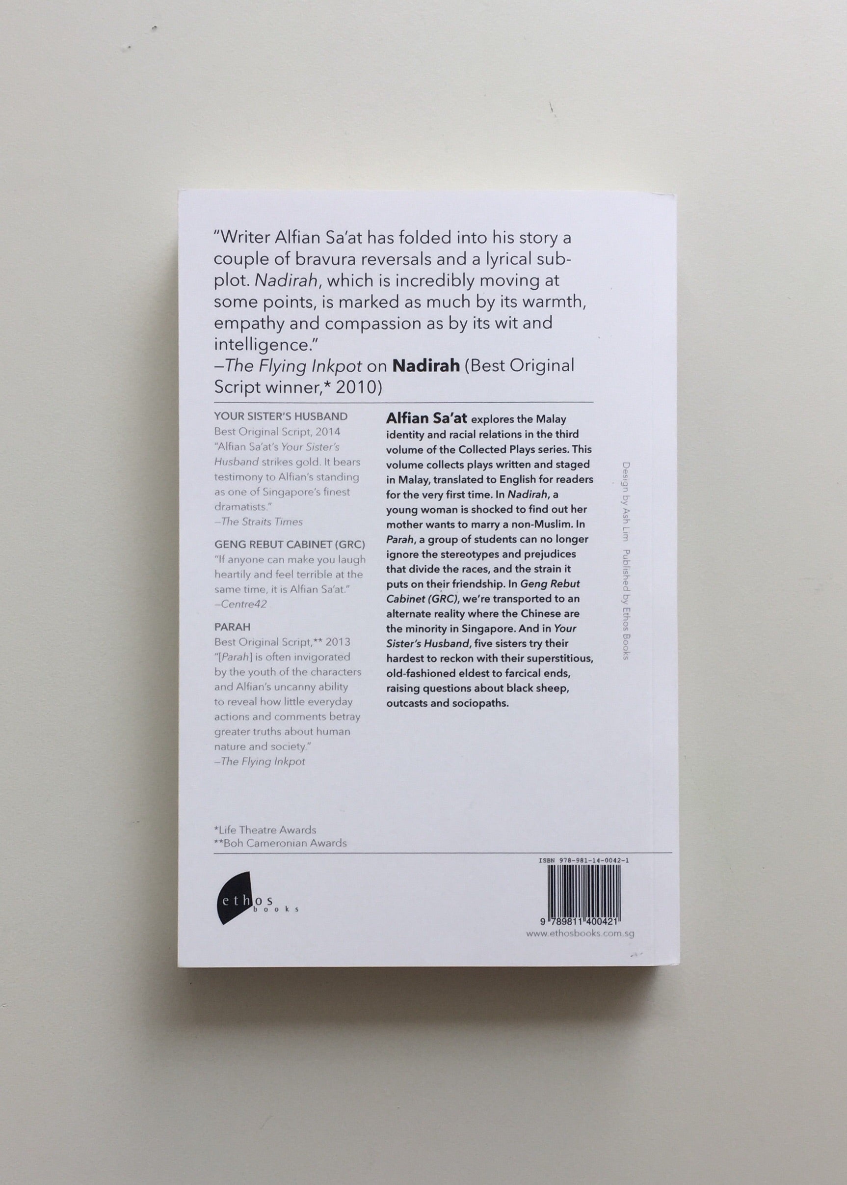 Alfian Sa’at explores the Malay identity and racial relations in this third volume of the Collected Plays series. This volume collects plays written and staged in Malay, and translated to English for the very first time. In Nadirah, a young woman is shocked to find out her mother wants to marry a non-Muslim. In Parah, a group of students can no longer ignore the stereotypes and prejudices that divide the races, and the strain it puts on their friendship. In Geng Rebut Cabinet (GRC), we’re transported to an alternate reality where the Chinese are the minority in Singapore. And in Your Sister’s Husband, five sisters try their hardest to reckon with their superstitious, old-fashioned eldest to farcical ends, raising questions about black sheep, outcasts and sociopaths.