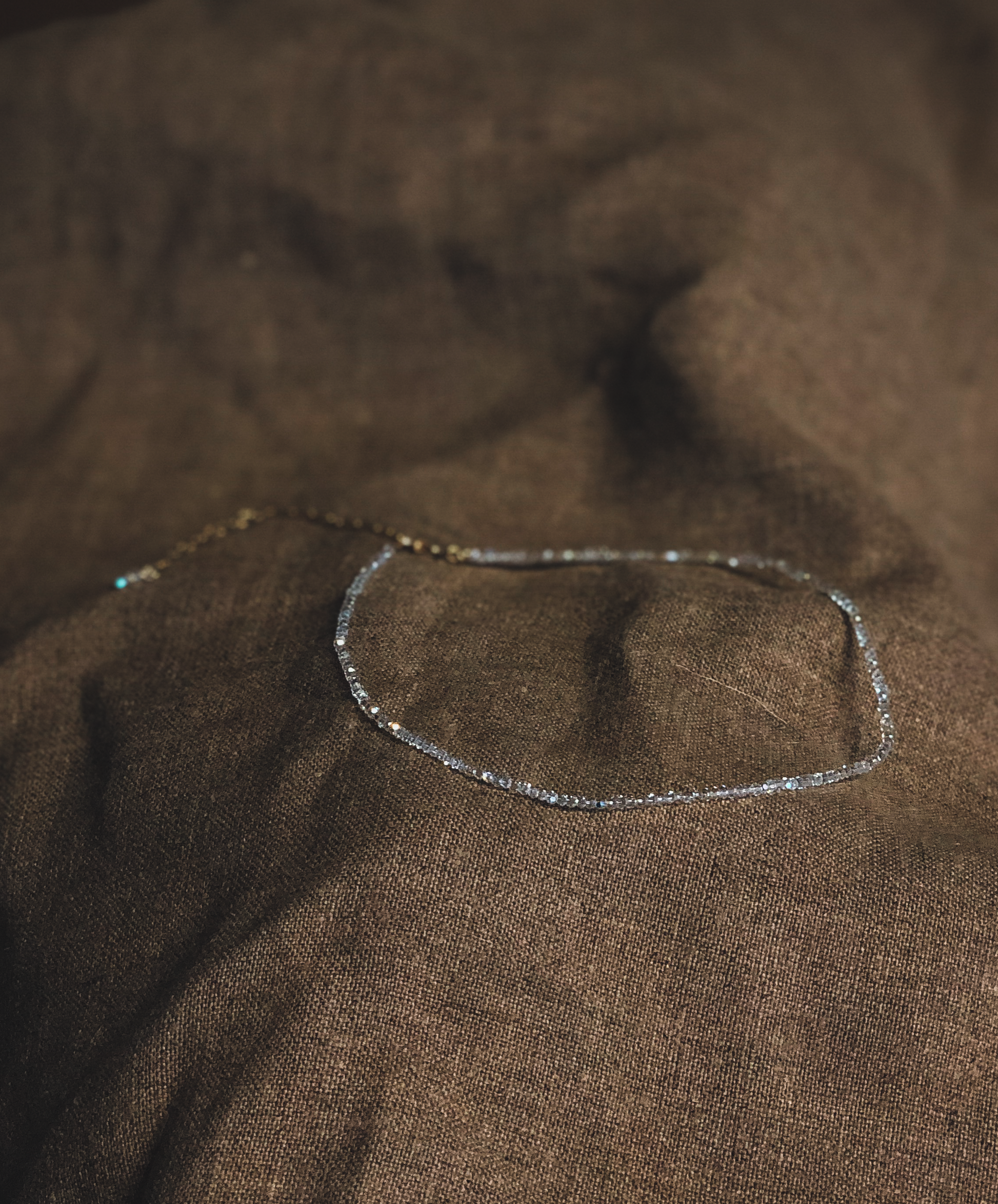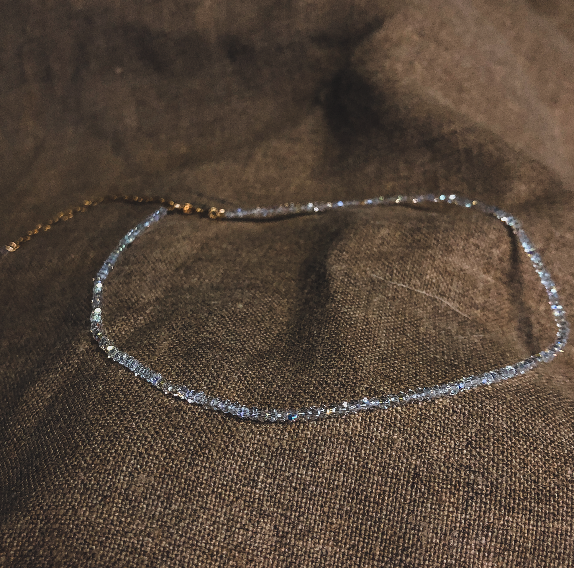 Handcrafted AB Crystal Continuous Choker Necklace with 14k Gold detailing.