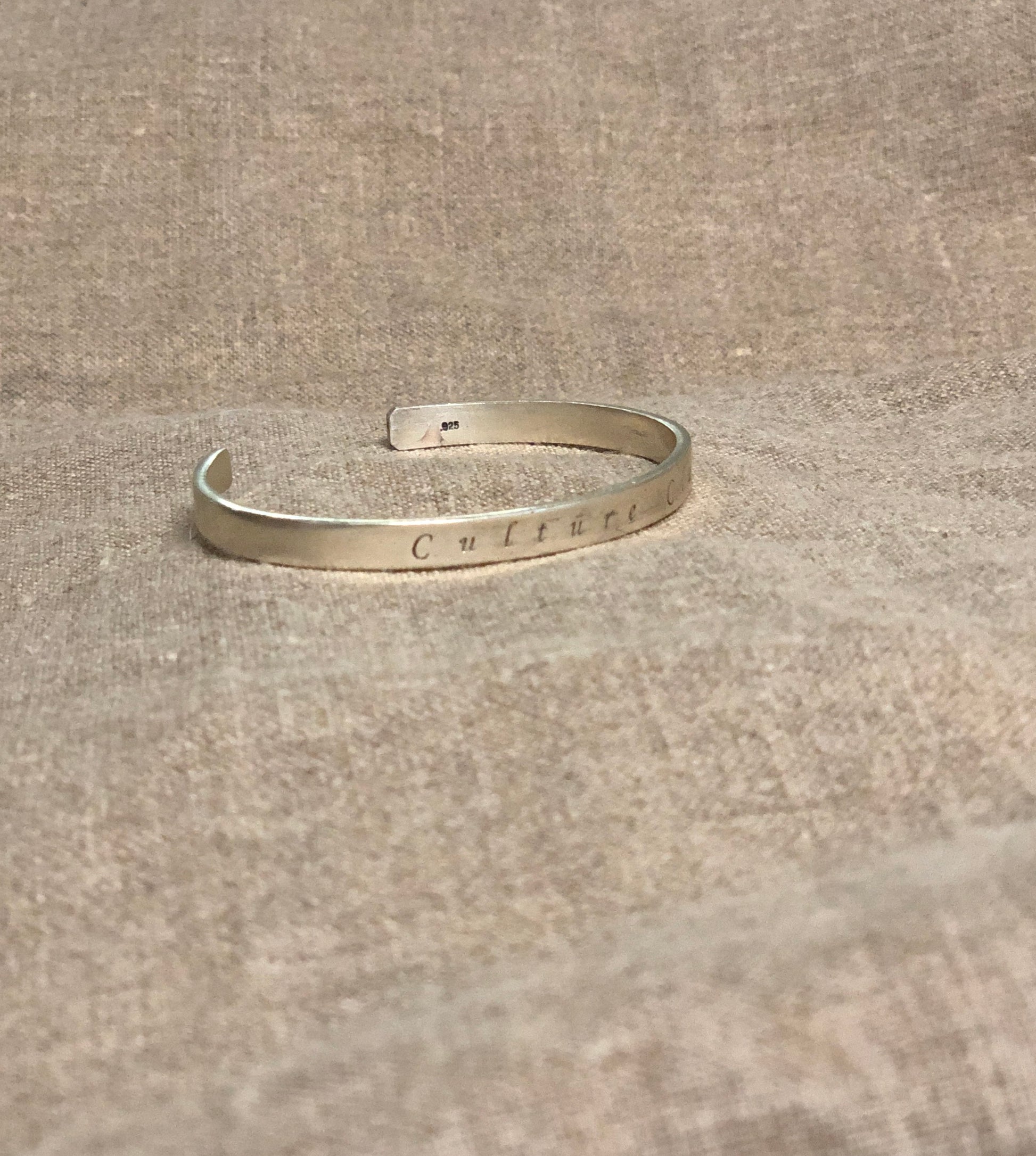 Open cuff in Sterling Silver with 2 lapis lazuli crystals. Engraved "Culture Clash" bracelet for men.
