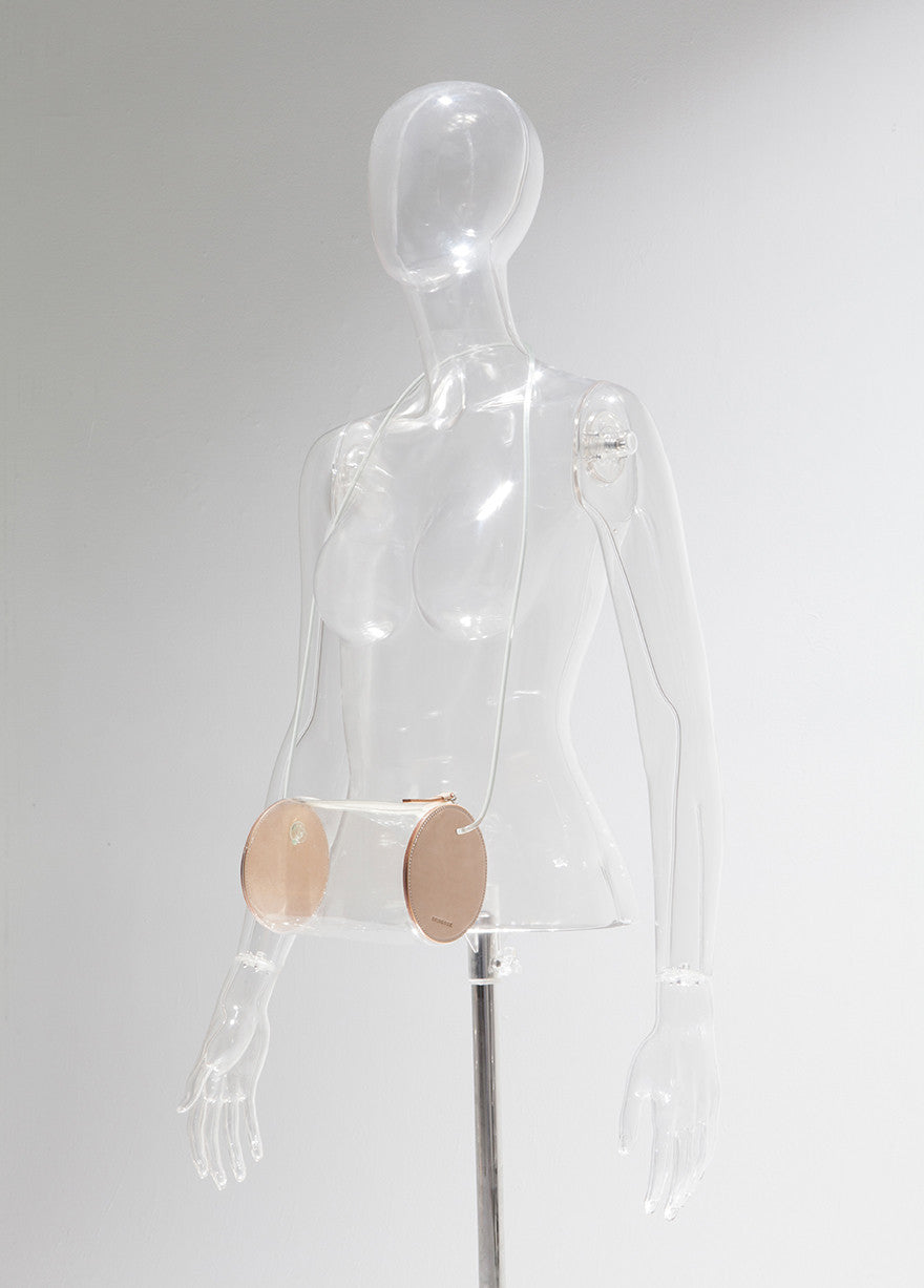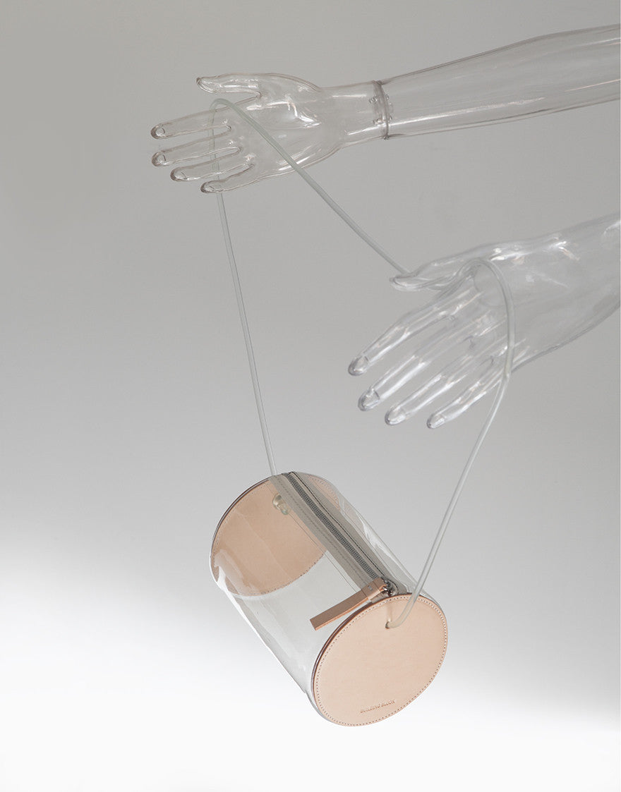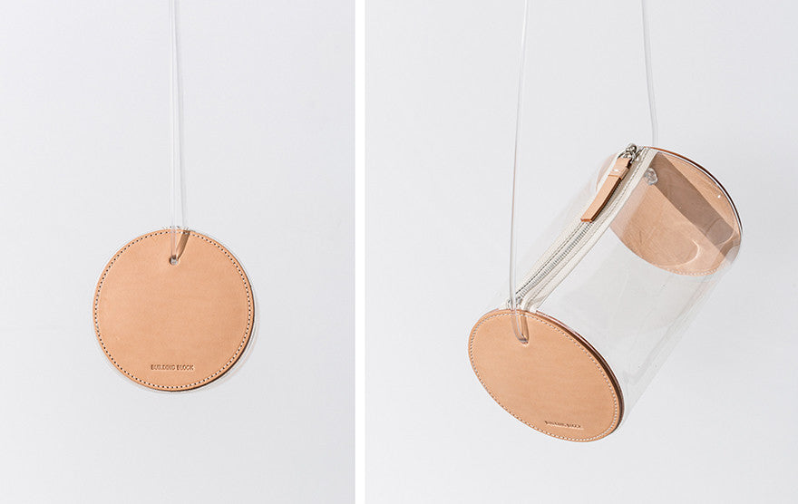 Clear PVC, Veg Tan leather sides, Zip closure, Clear PVC shoulder strap