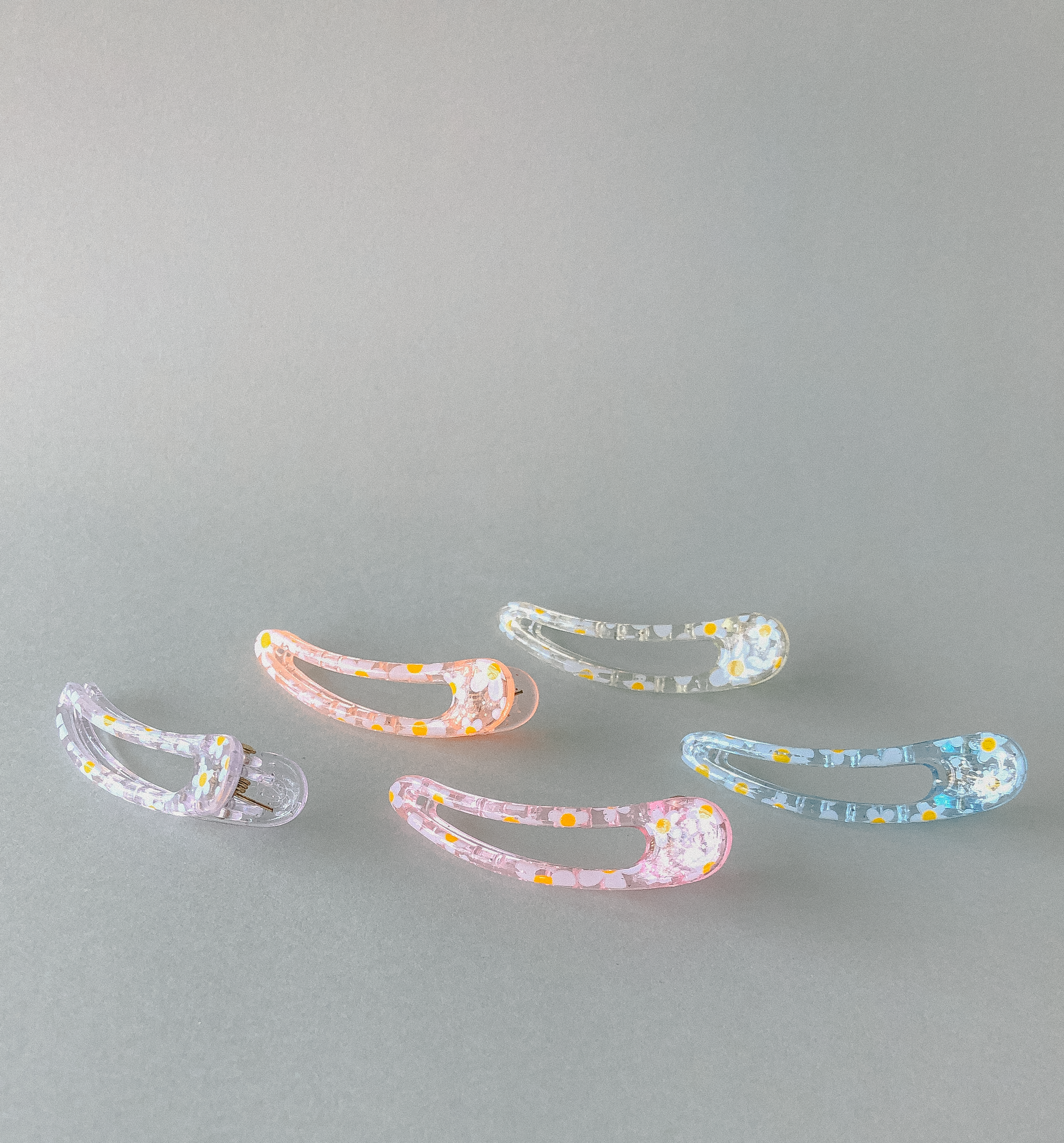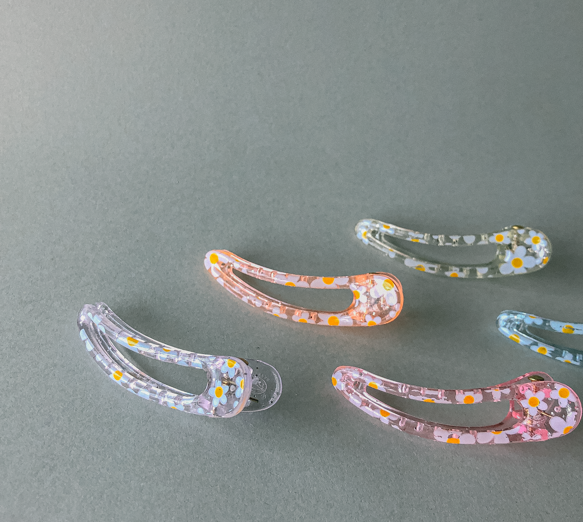 These are small teardrop shaped hair slides. These are great for keeping stubborn pieces of hair in place gently.