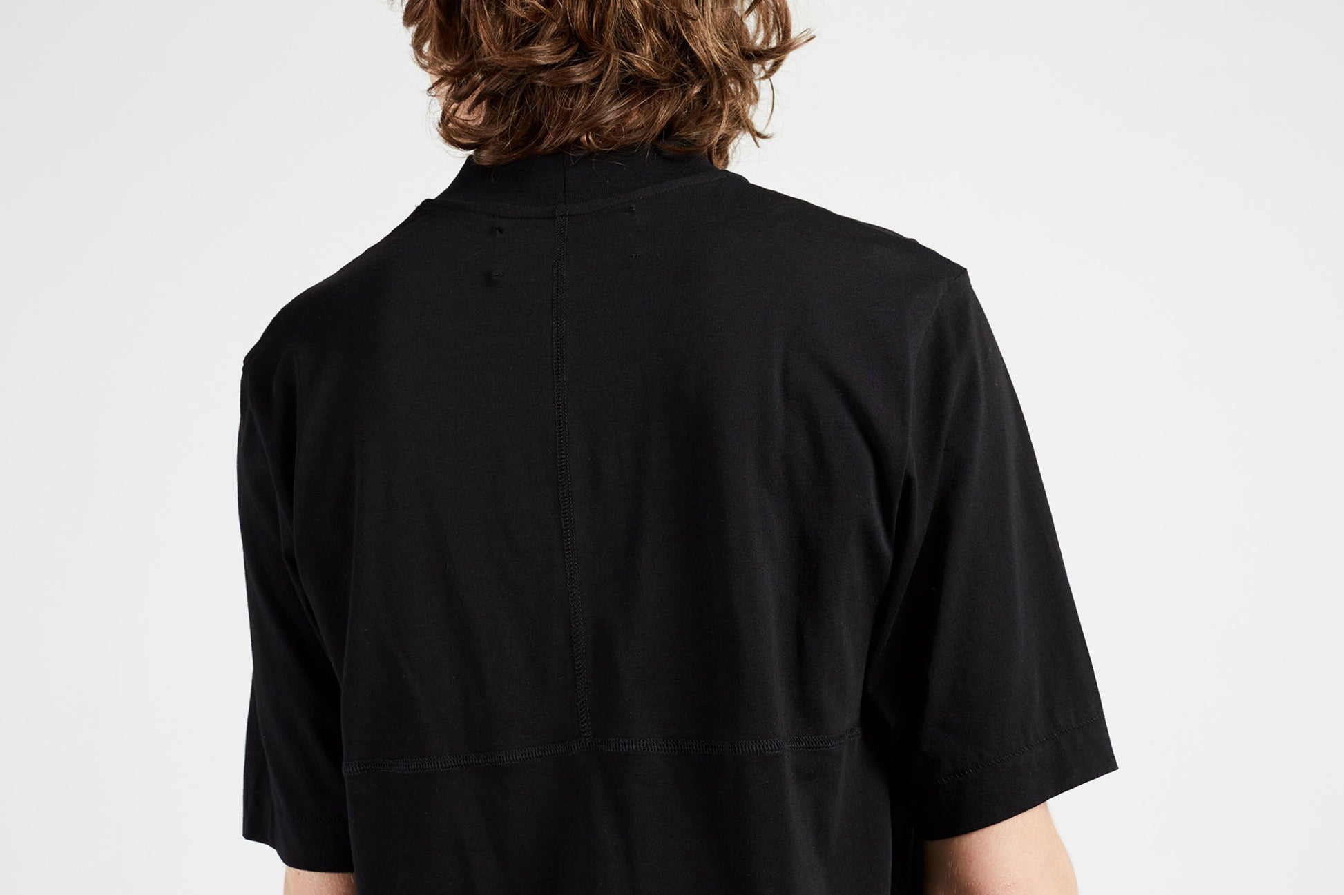 High-necked T-shirt made from black cotton with white É logo embroidered detail.