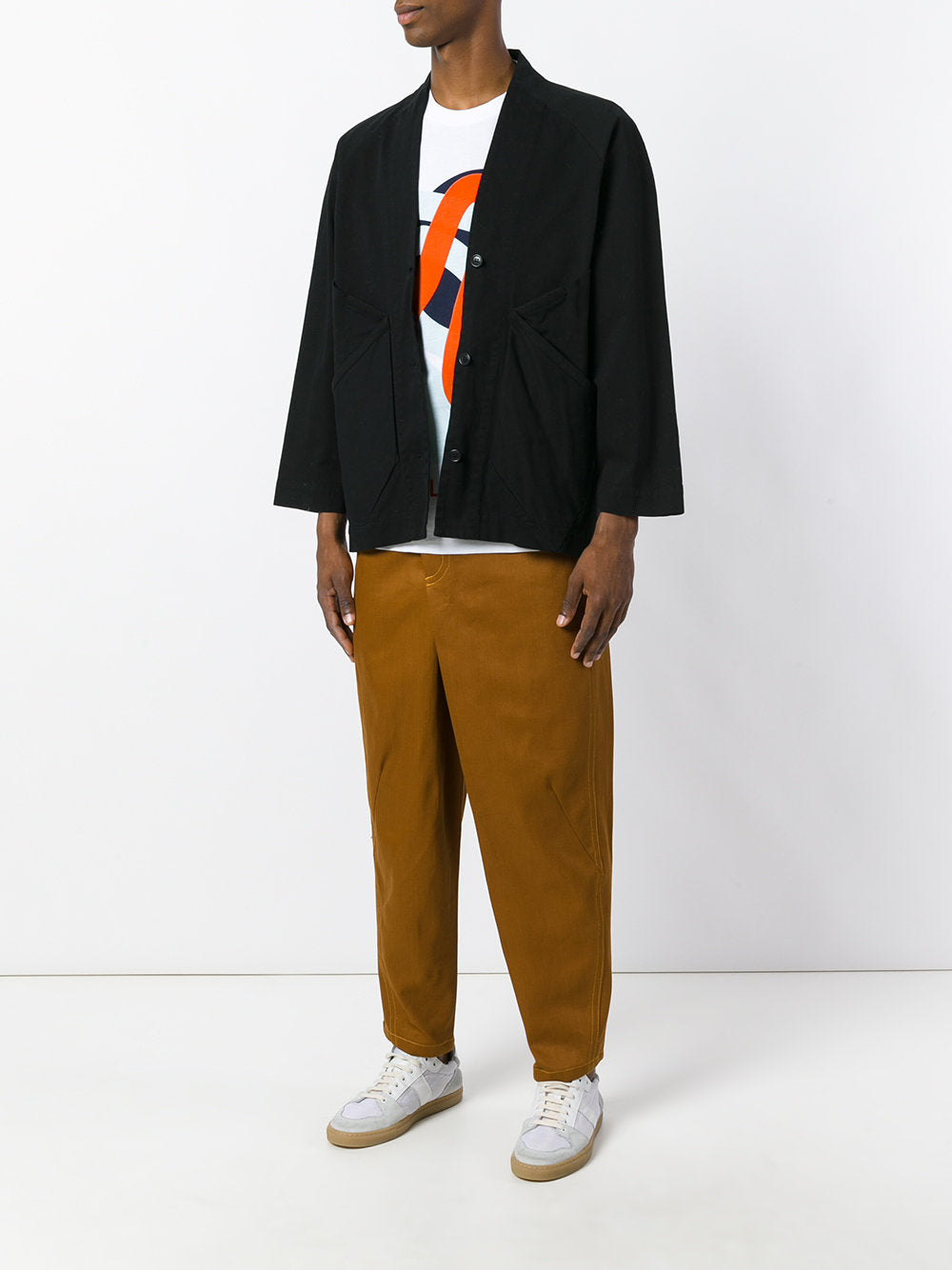 Relaxed field jacket in soft canvas with zigzagging deep front pocket details. Three-button closure. V-neckline. Raglan shoulders with long sleeves. Machine wash. 97% cotton, 3% elastane.