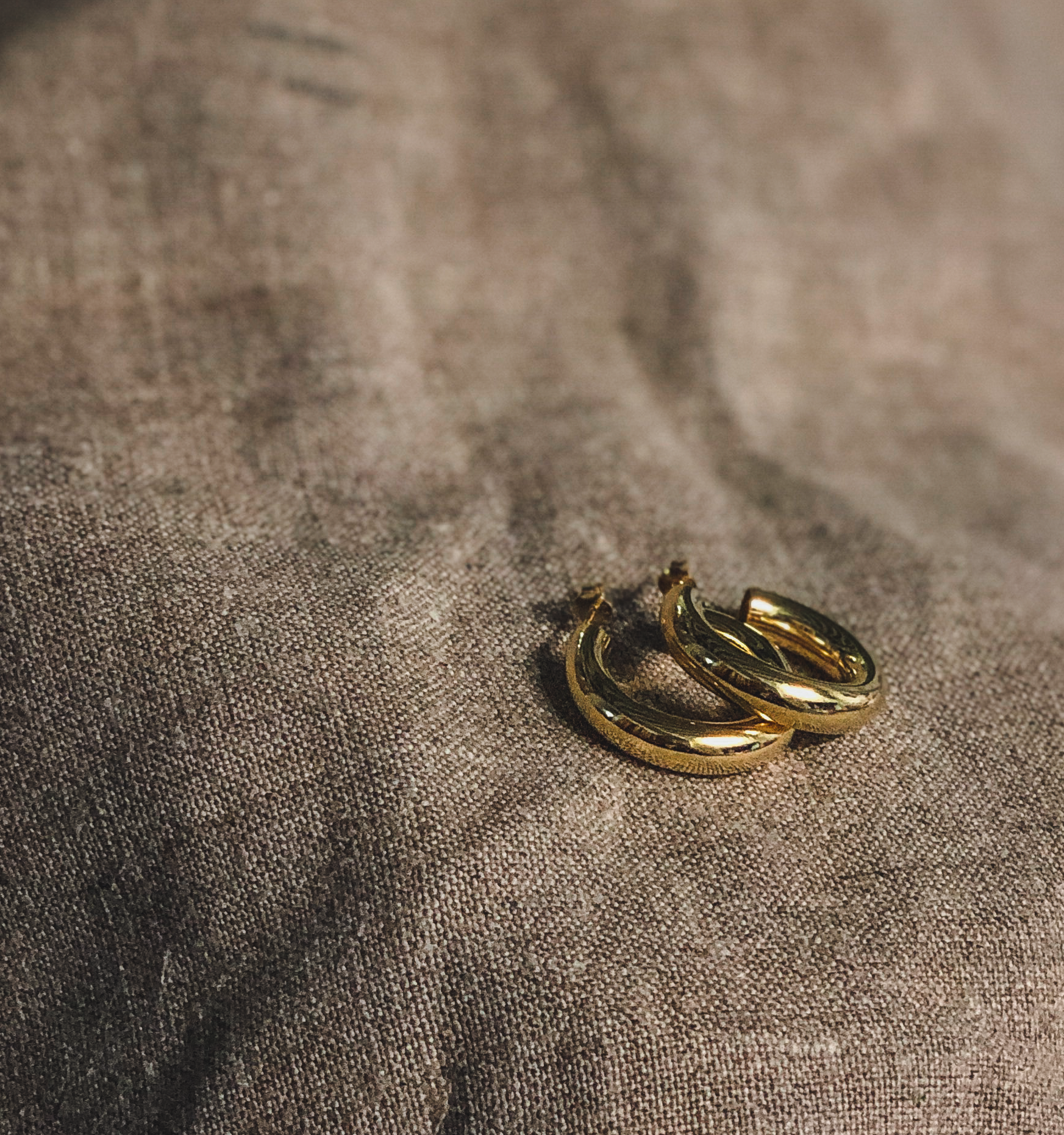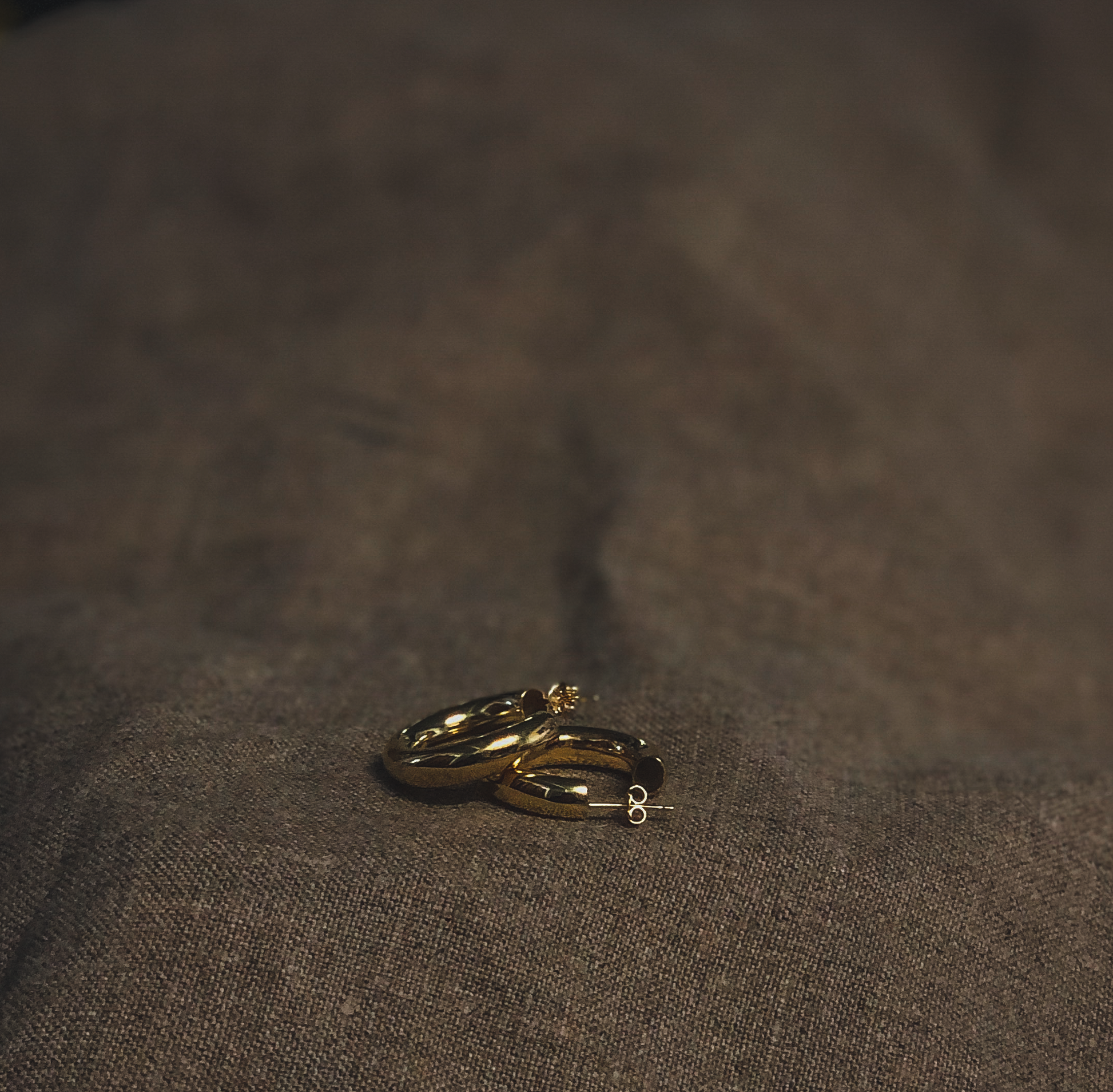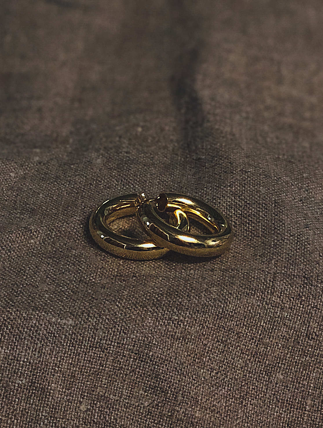 Simple handcrafted hollow hoop earrings in 14k Gold.