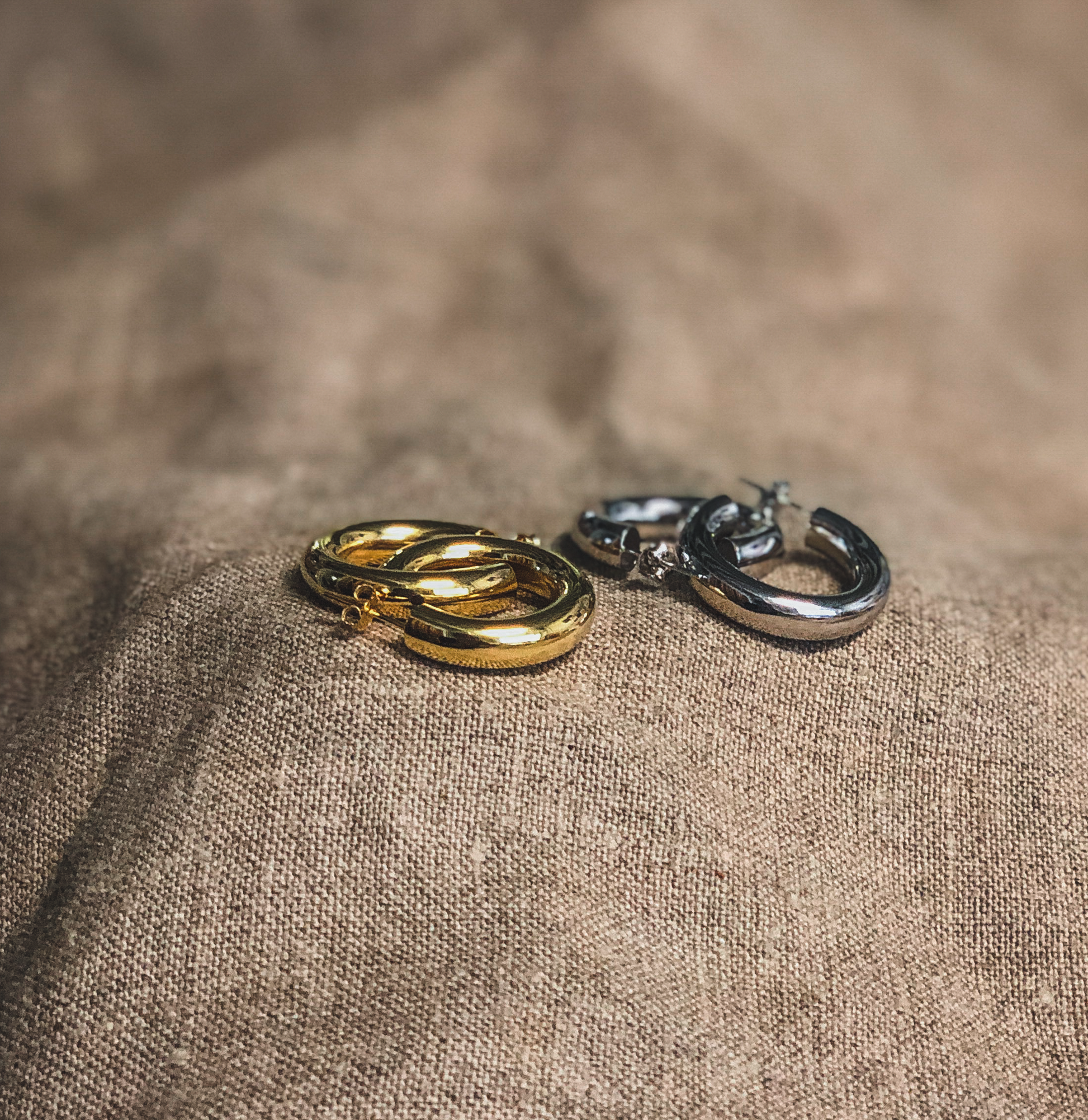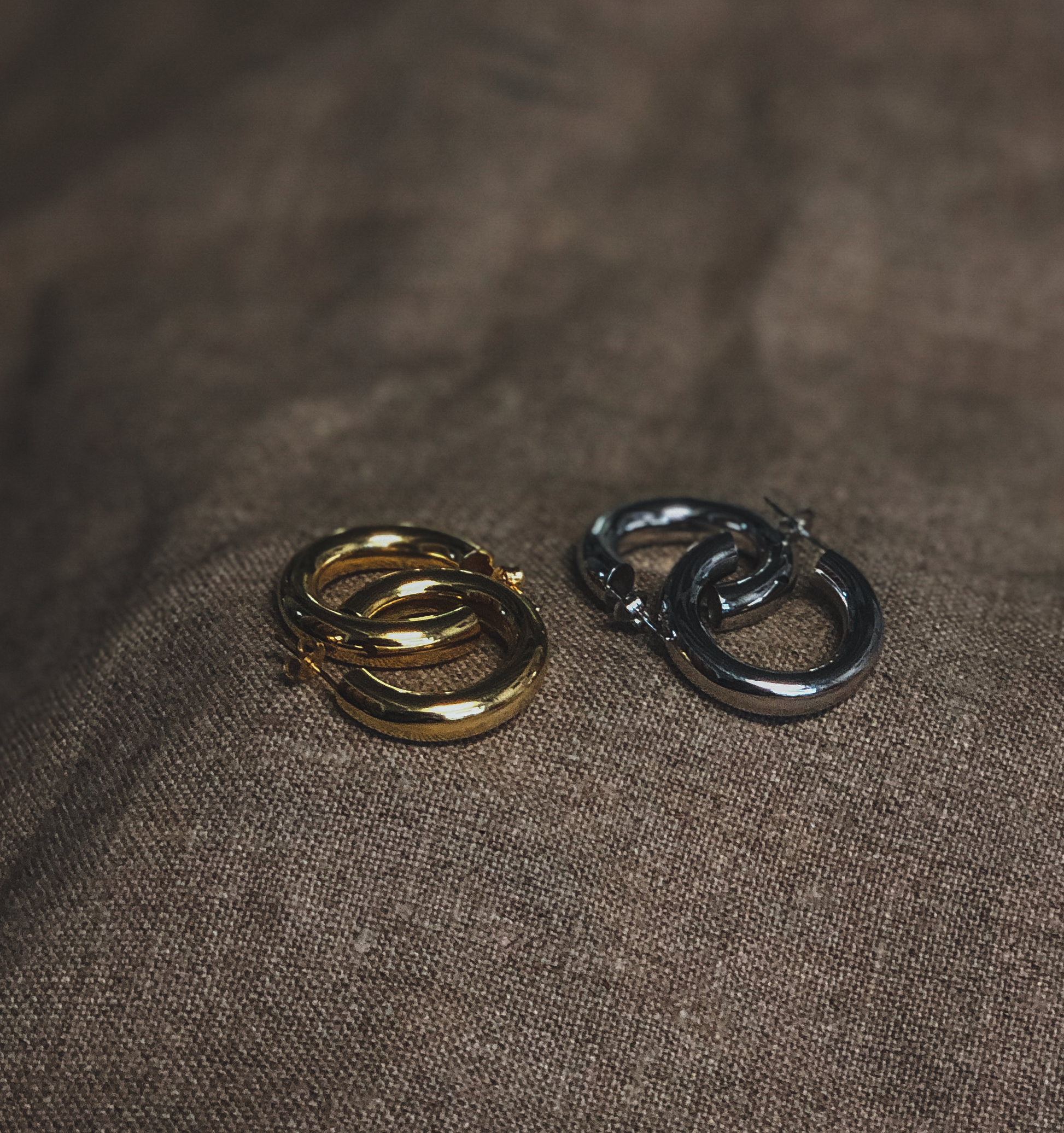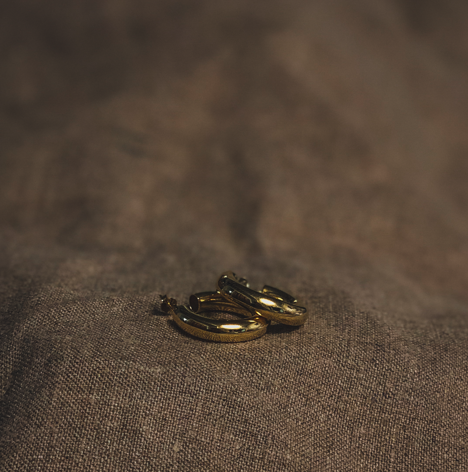Simple handcrafted hollow hoop earrings in 14k Gold.