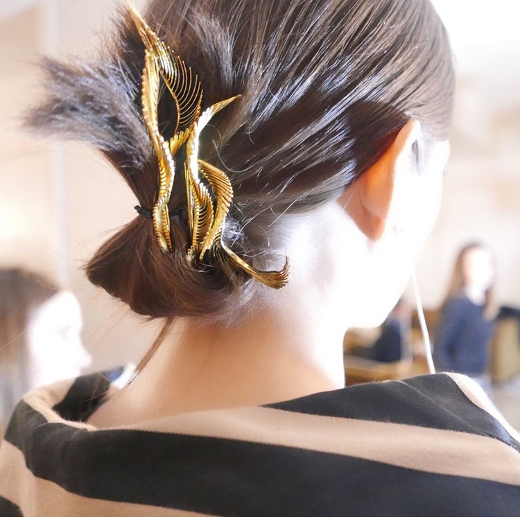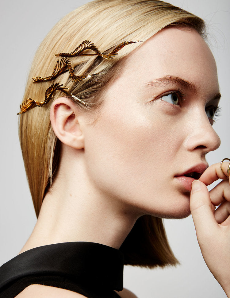 We set out to remake an organically shaped quill into a multifaceted metallic sculpture for the hair.