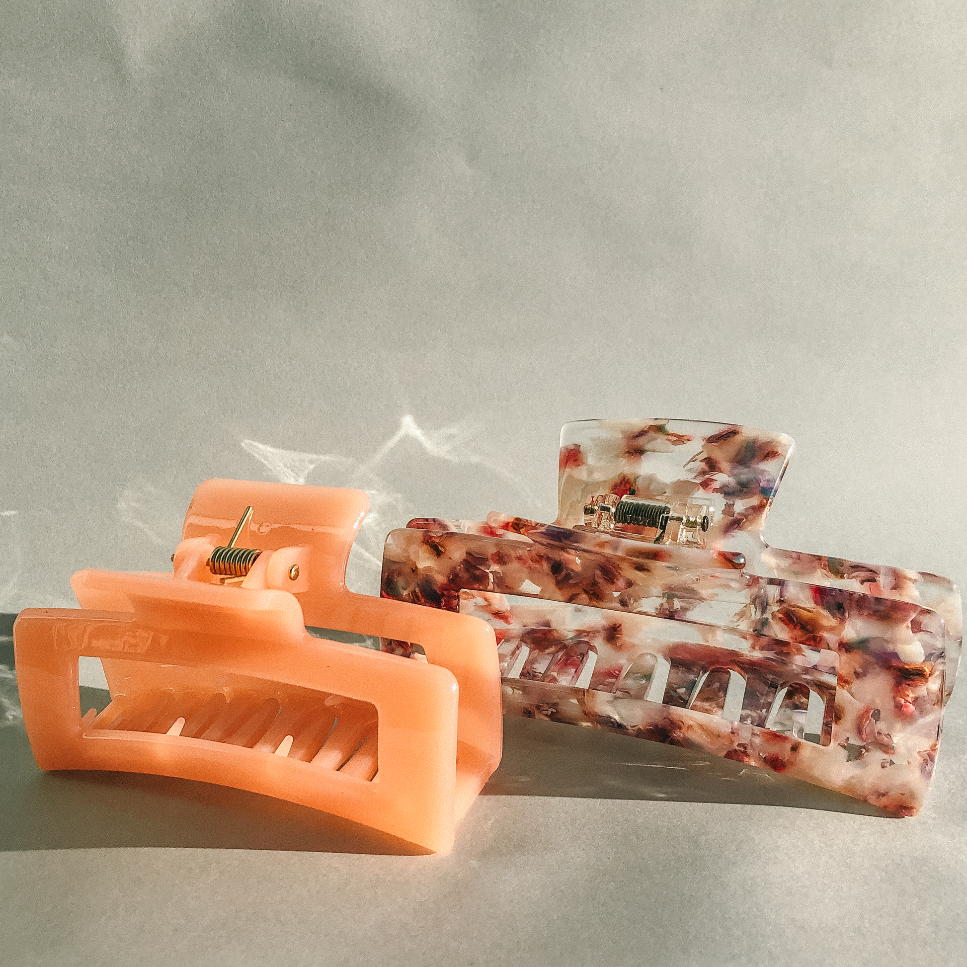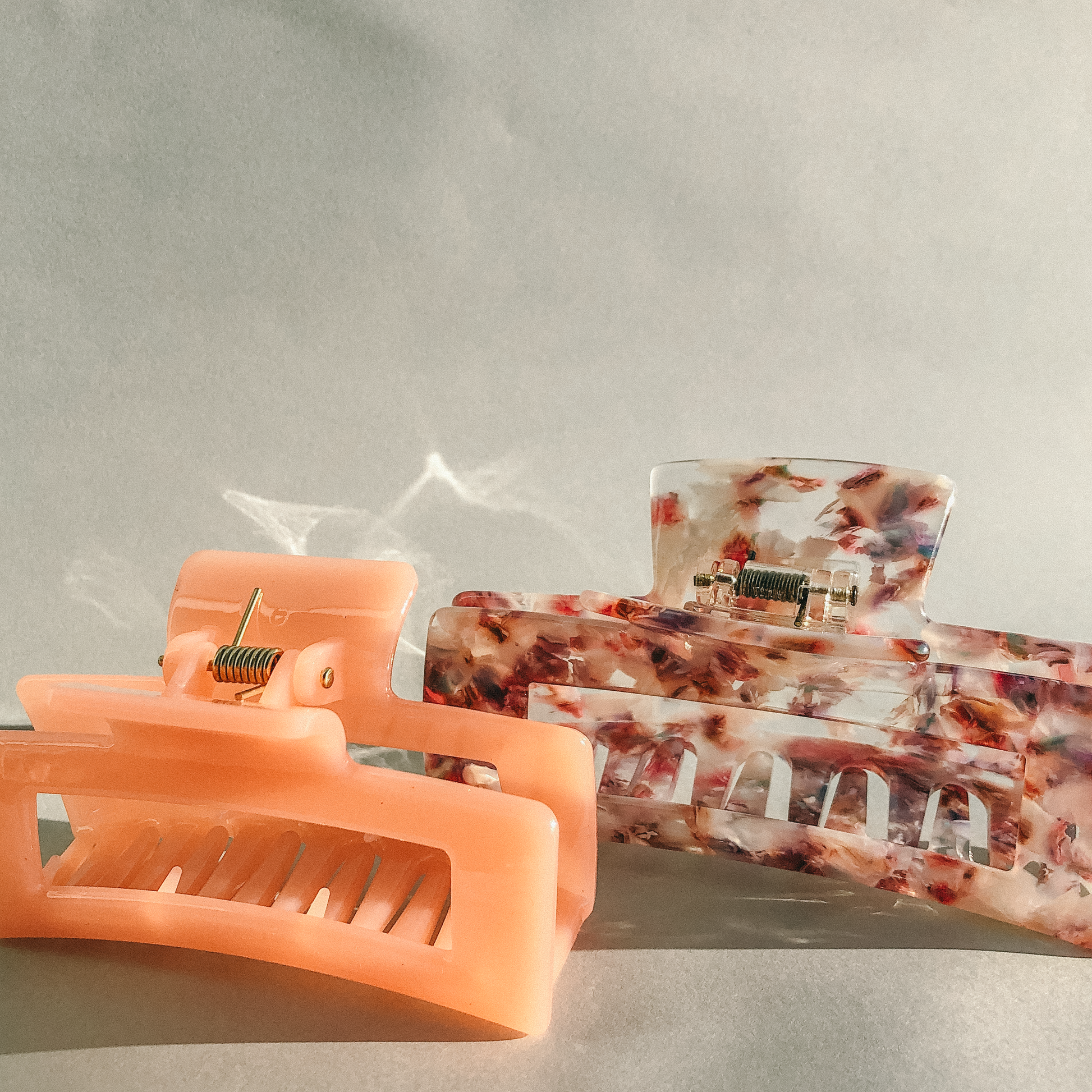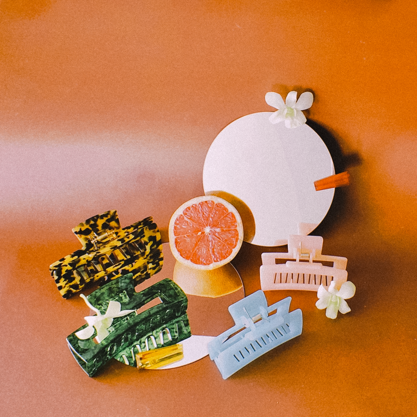 The Emma Hairclaw in Mint is made of 100% acetate and measures 9cm x 4.5cm.