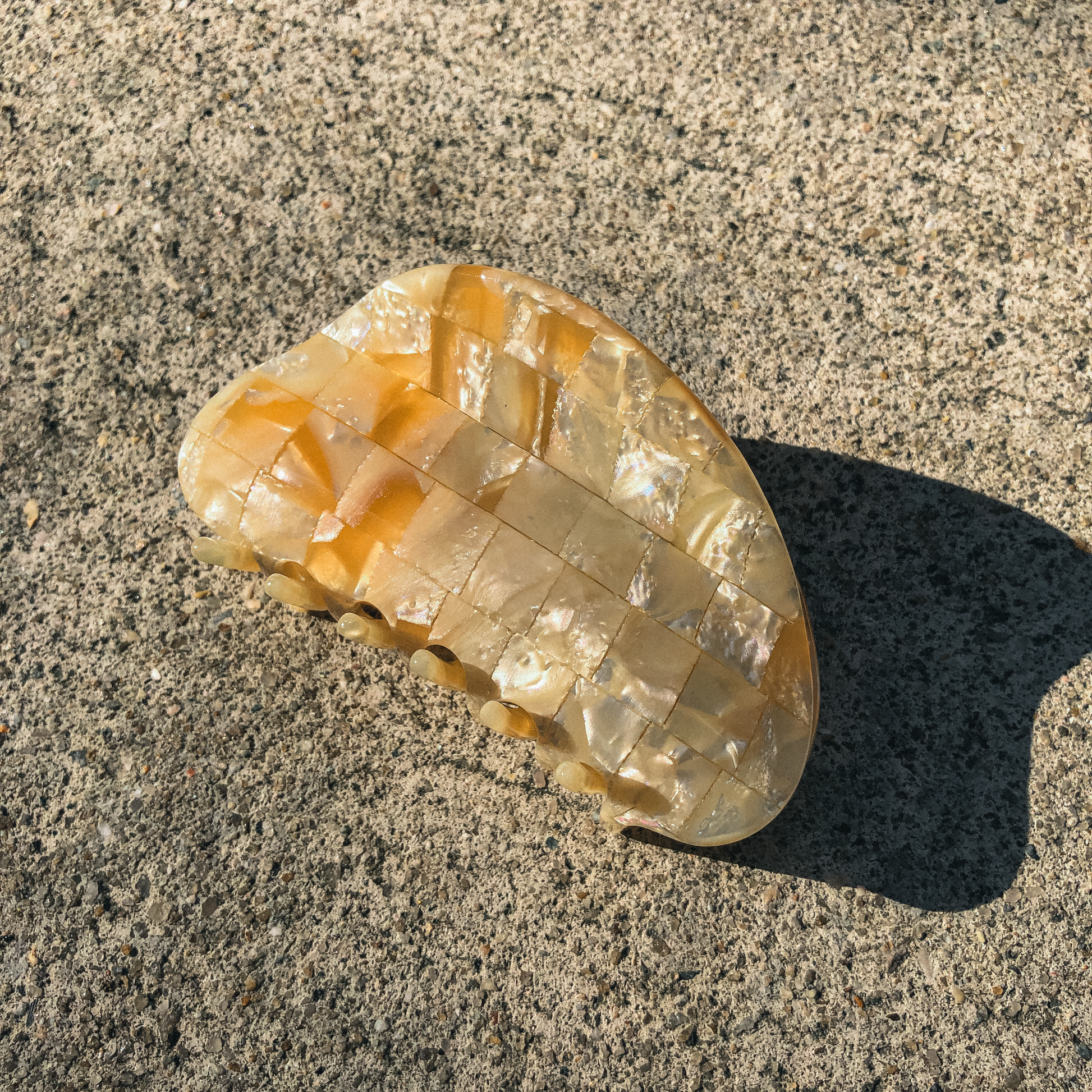 Mother of Pearl Checkerboard Hair Claw by Veronique