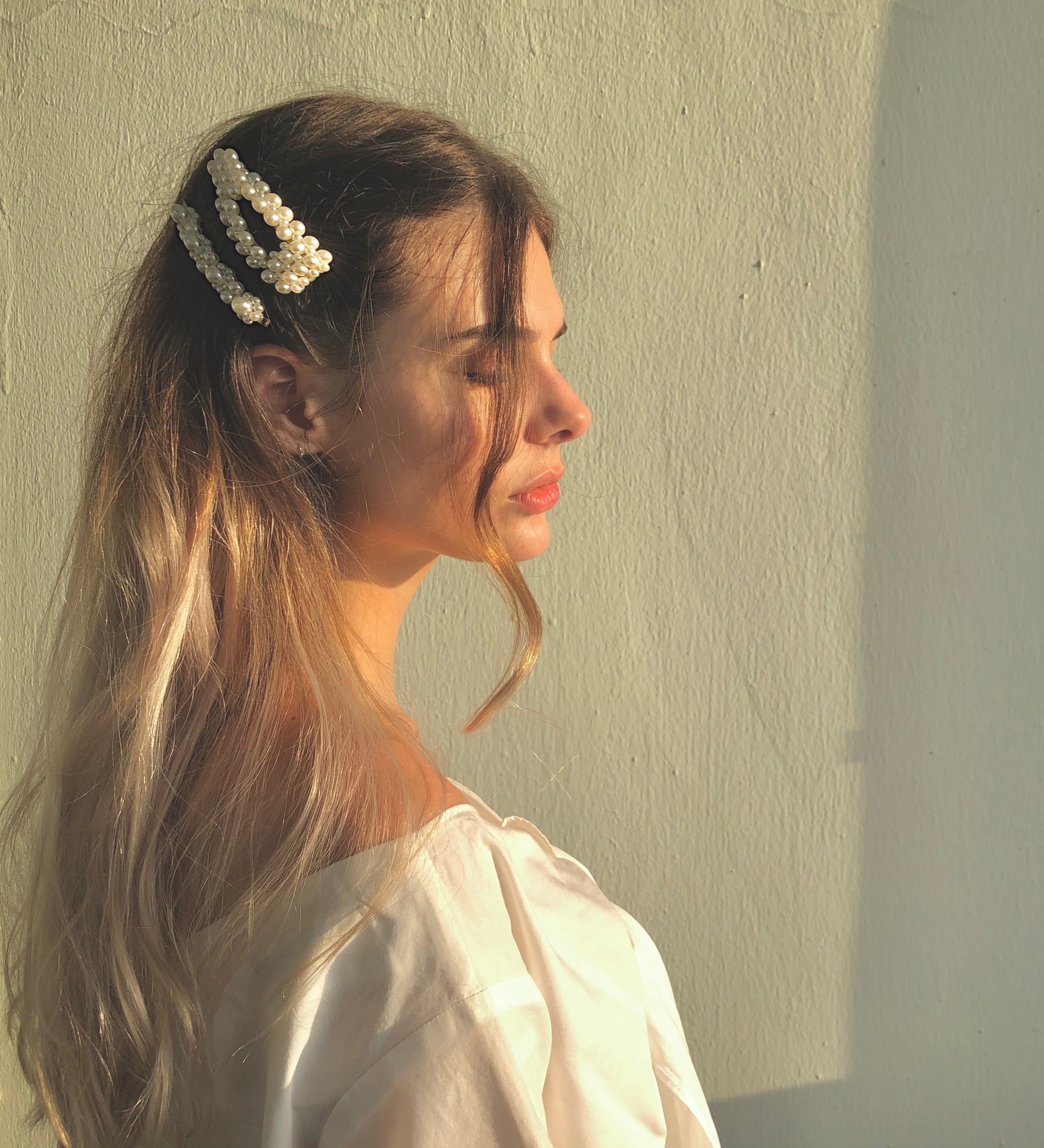 - The Statement Hair Clip comes fully beaded in mini pearls with a cute bauble and crocodile clip backing
