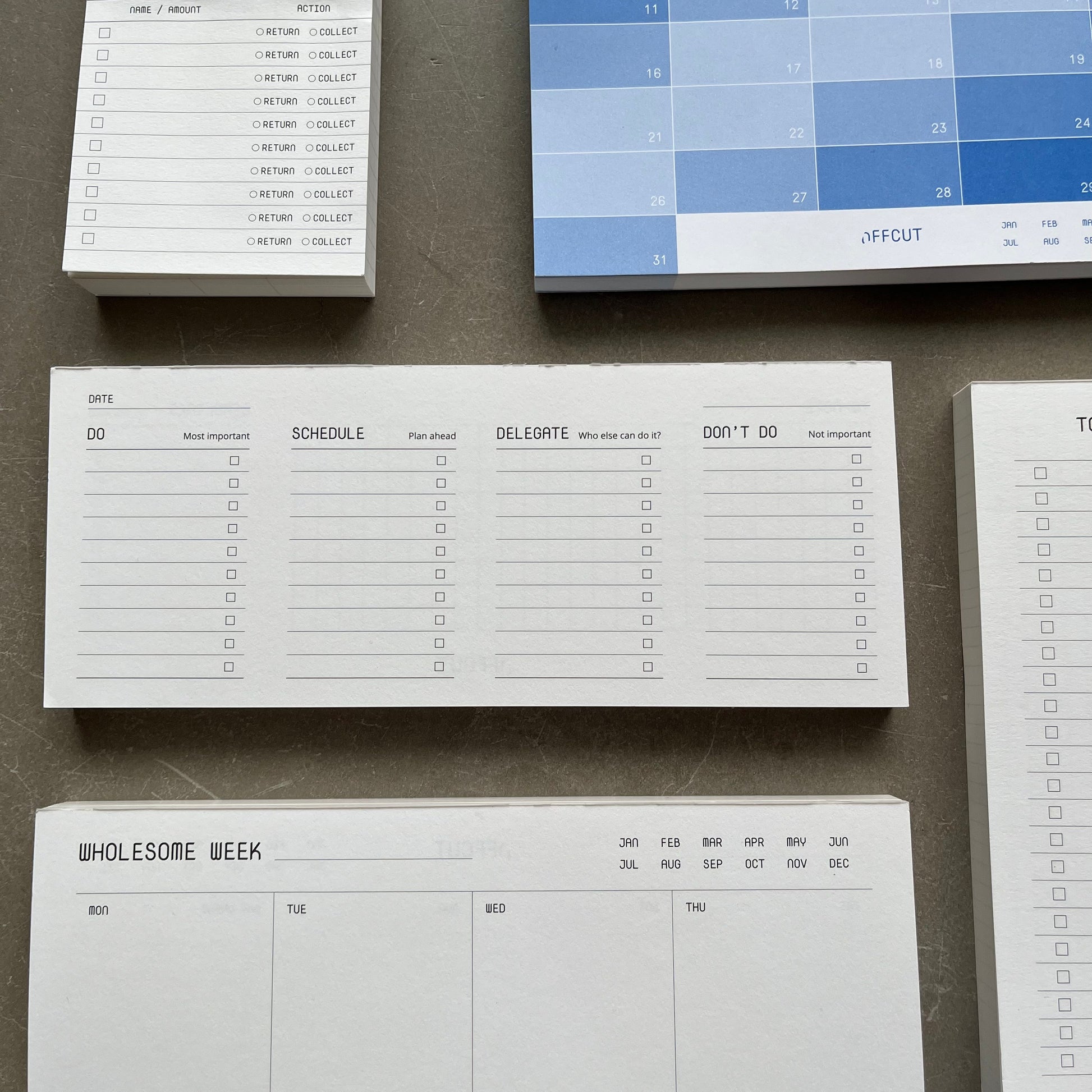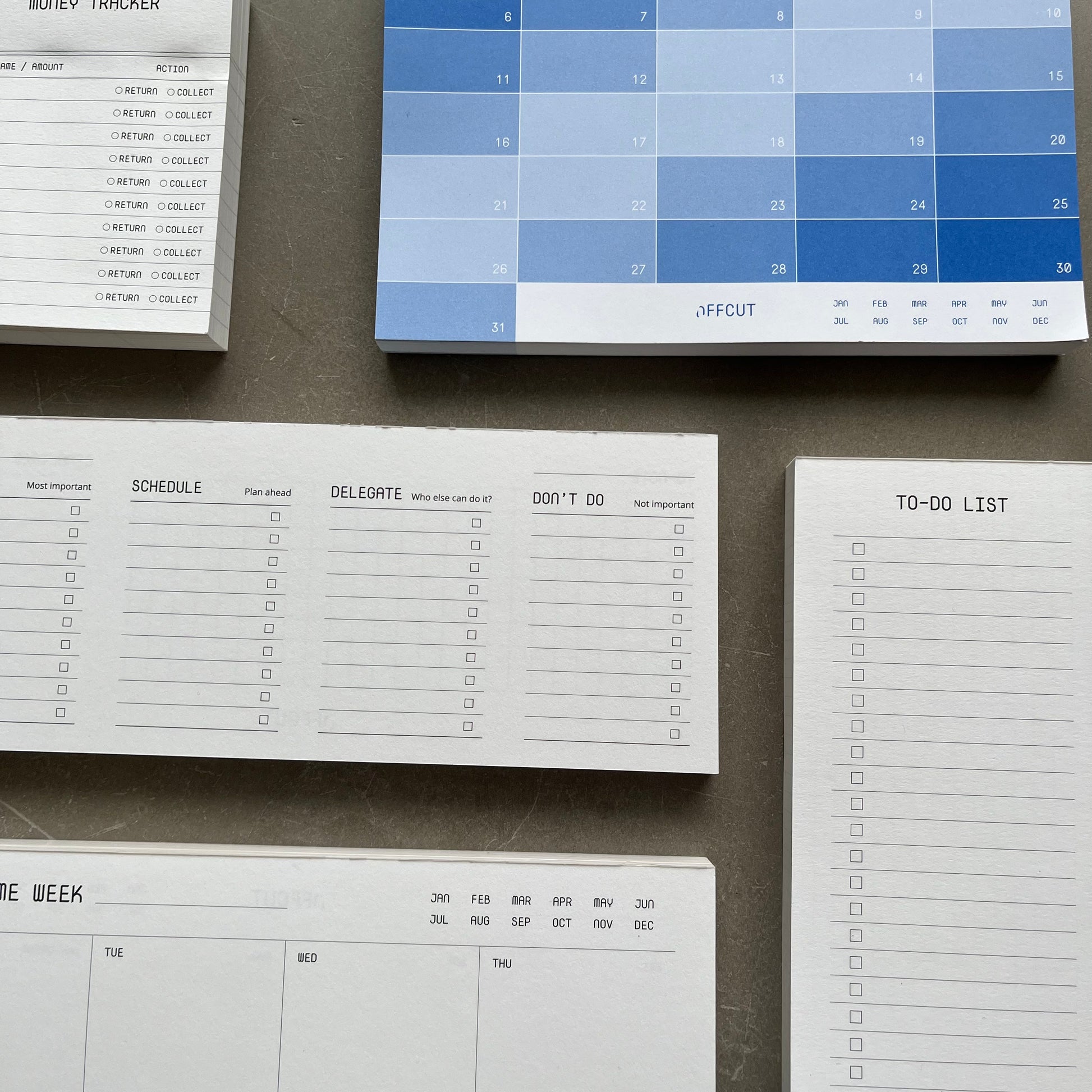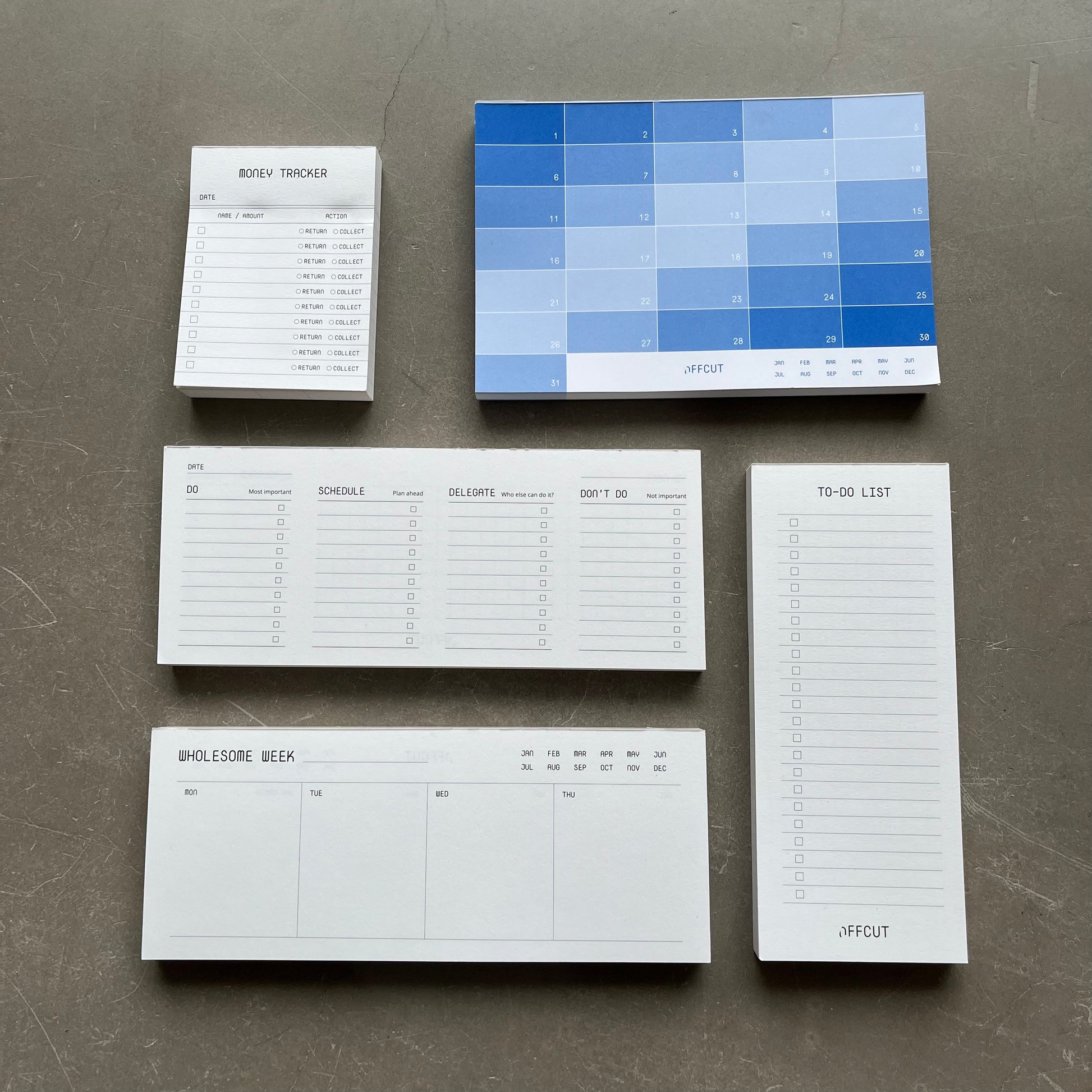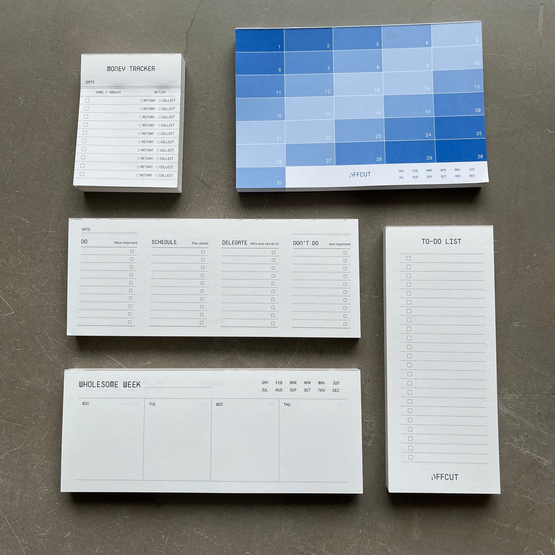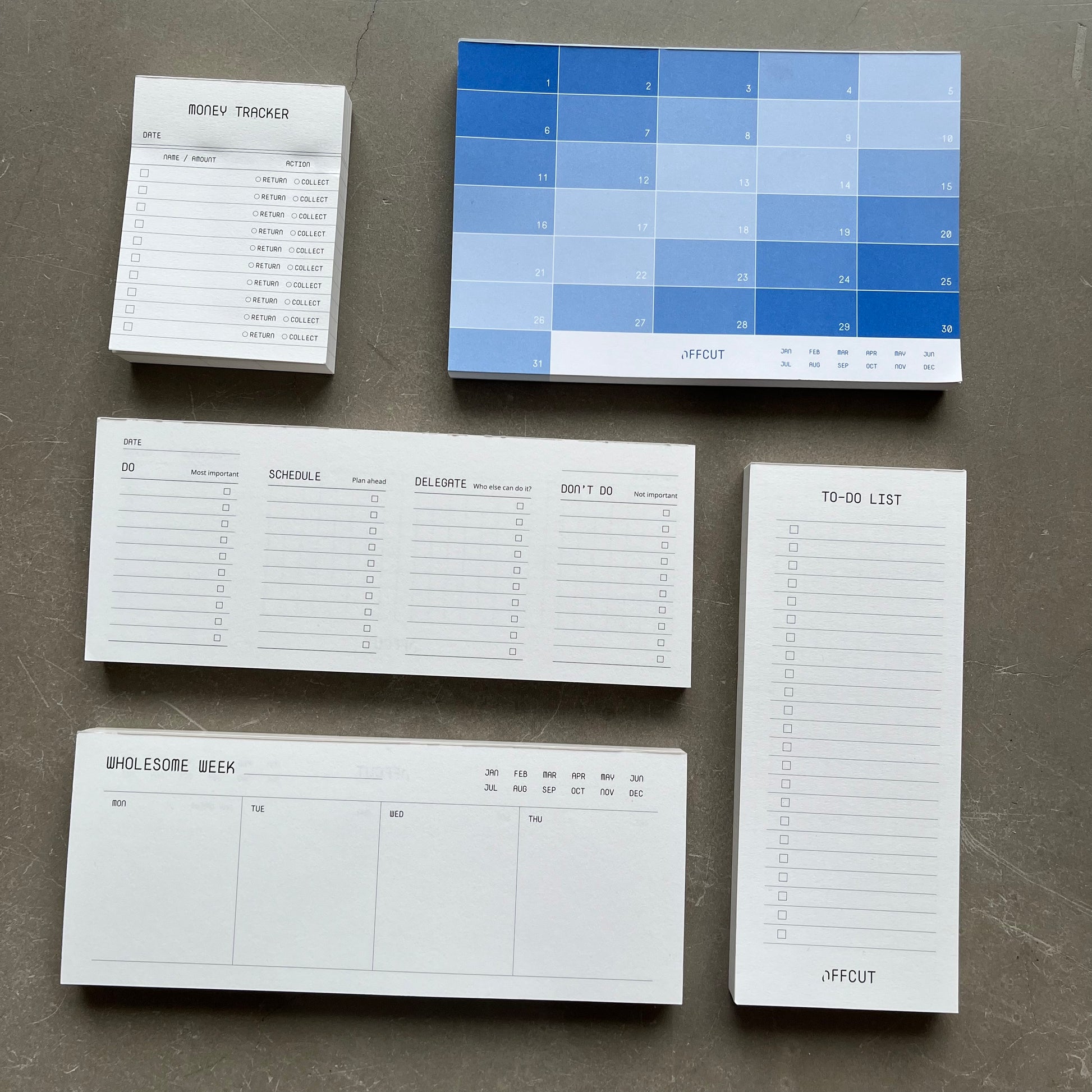 This 5 piece bundle includes 1 Limited Edition Block Calendar, 1 Money Tracker, 1 Productivity Matrix 2.0, 1 Wholesome Week and 1 To-Do List.