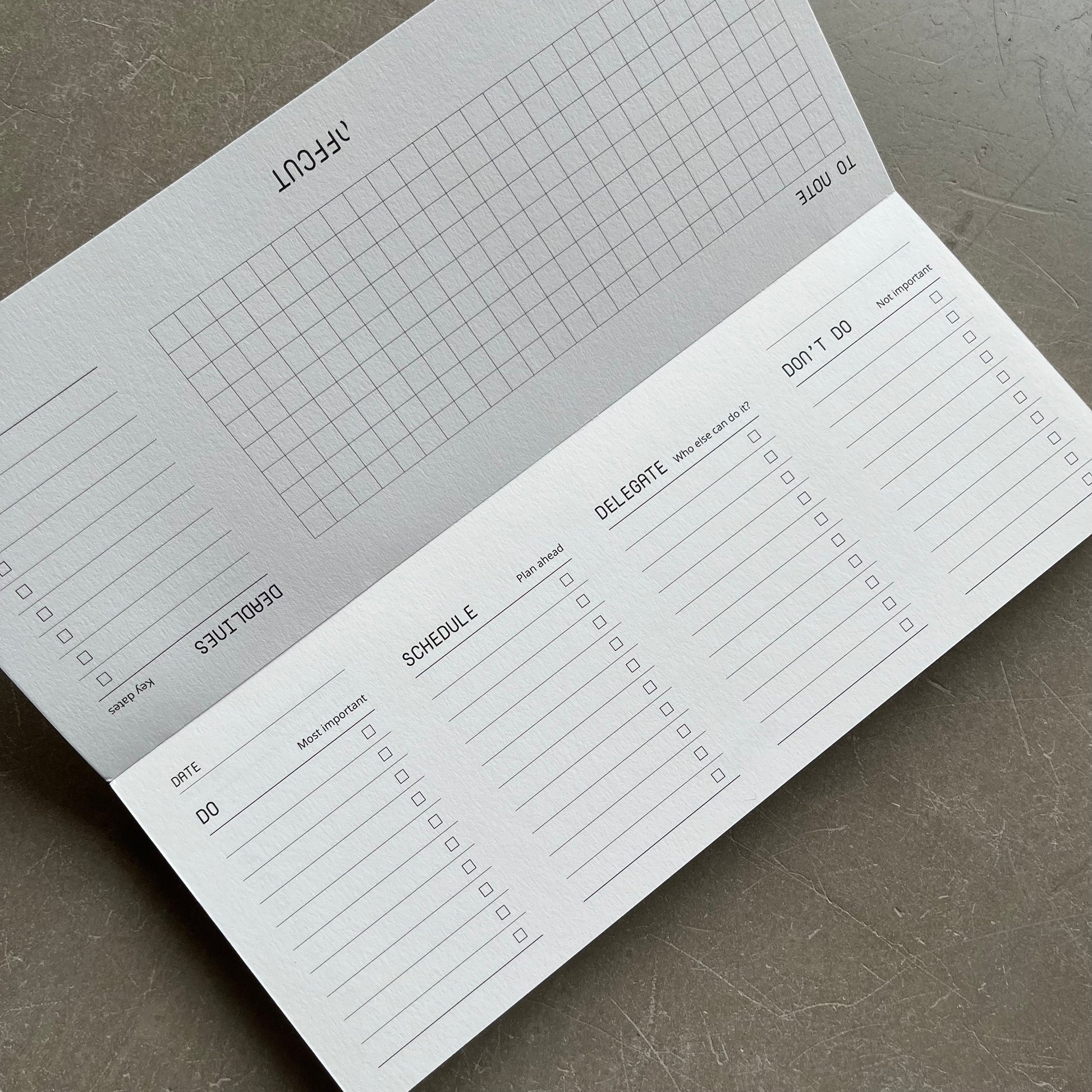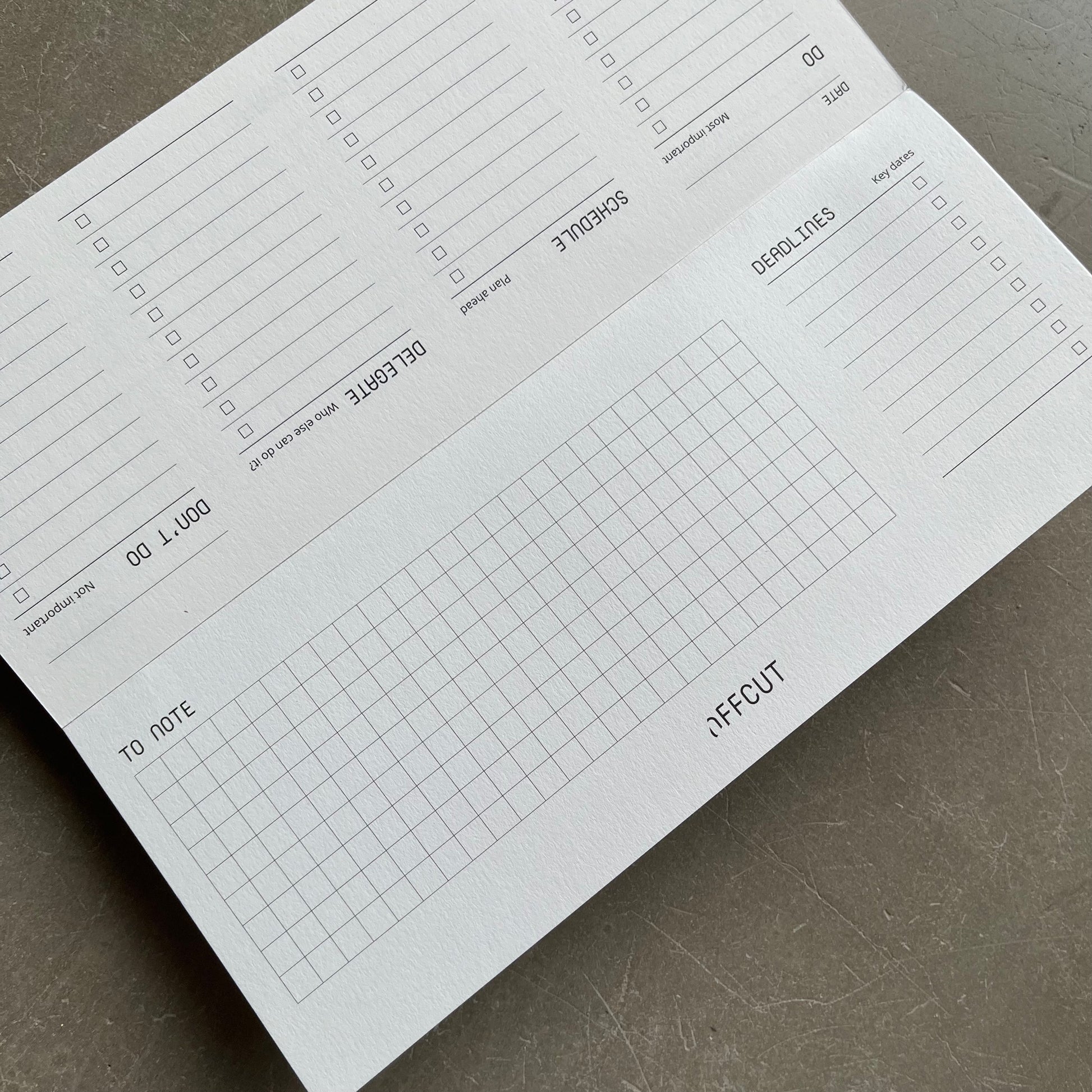 A double sided activity organiser to help you plan your day according to prioritised sections and checklists.