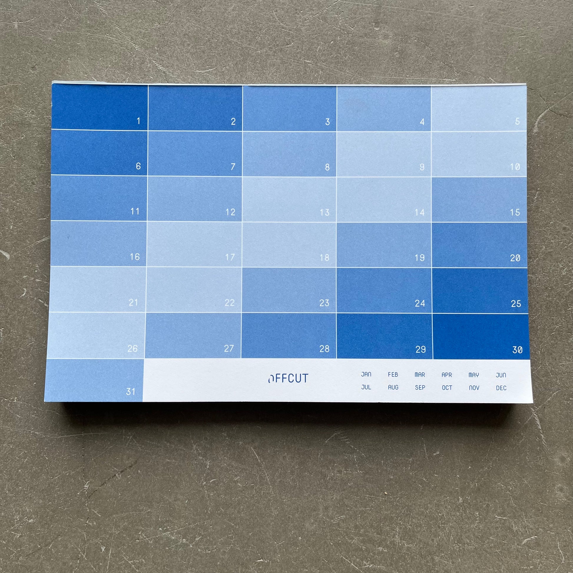 1. Block Calendar: A monthly tear-off block calendar in a gradient of blue and white for overall scheduling.