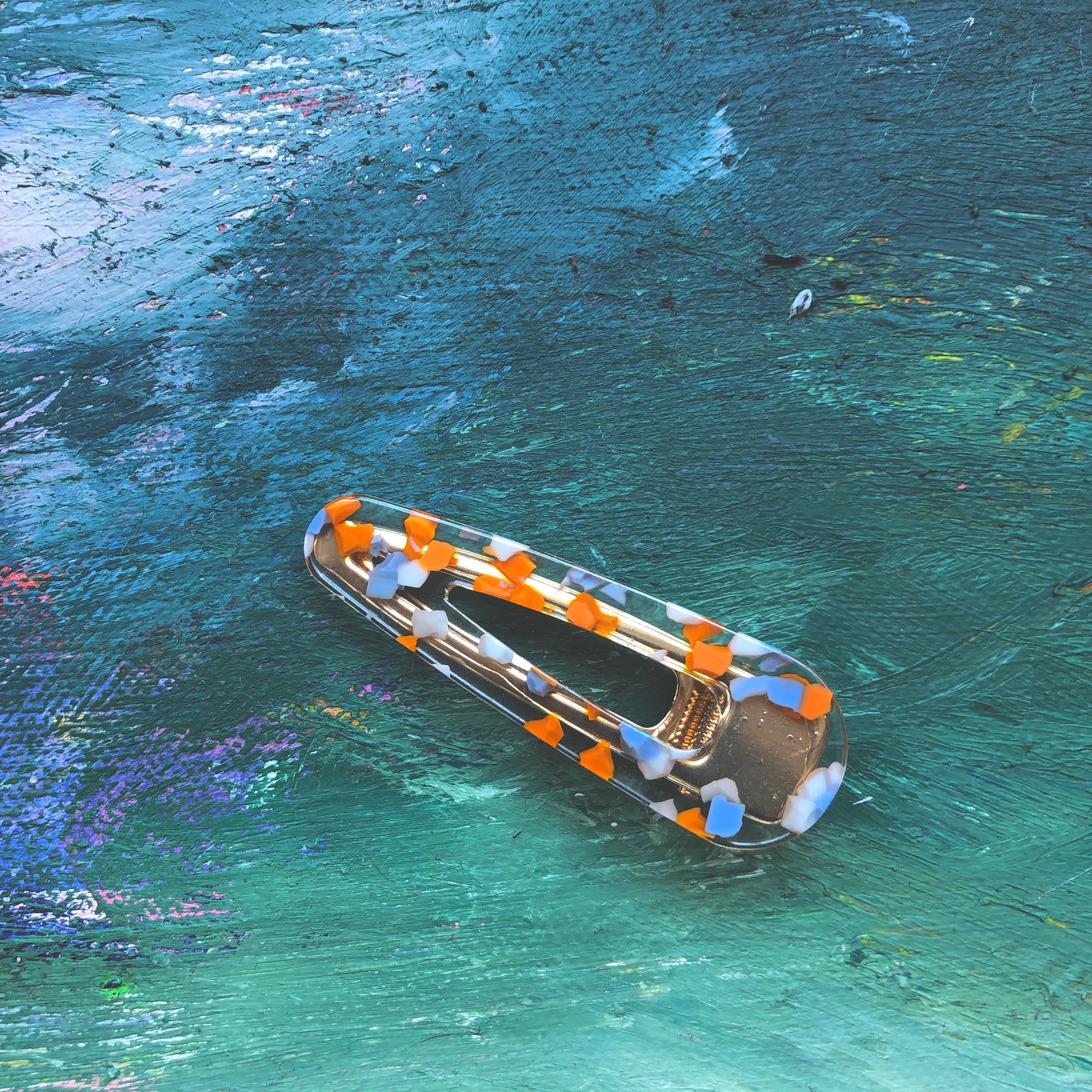 - Blue & Orange Rectangular Crocodile Barrette 6