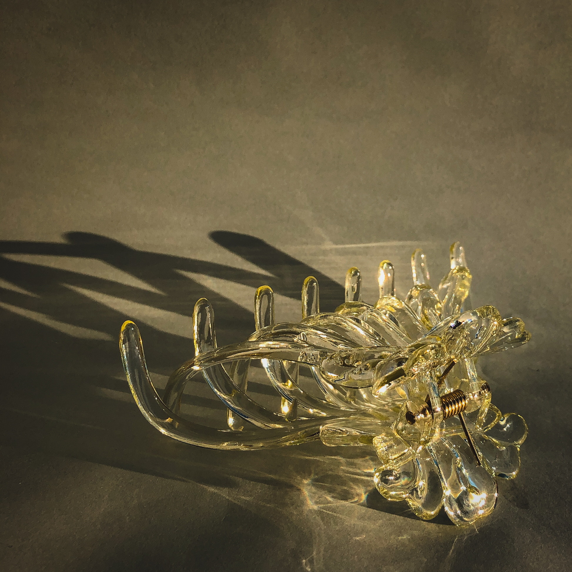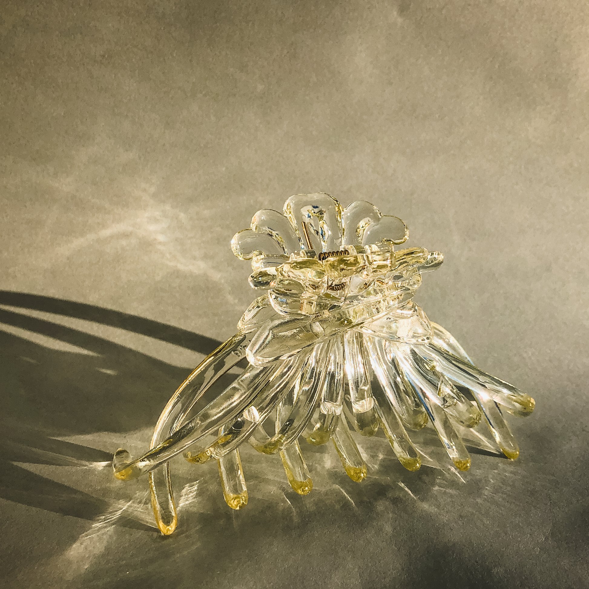 The Retro Citron Hair Claw is a new addition to our retro acetate collection of hair accessories. The sunny yellow tint gives a subtle pop of colour to your updo.
