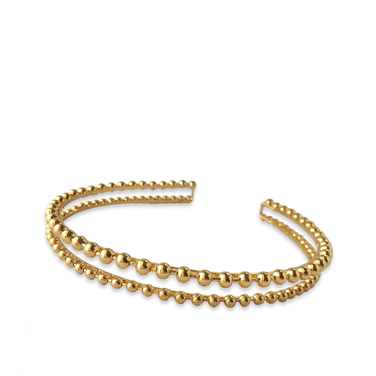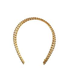 This headband is handmade of 14 karat gold plated brass, adorned with ball chain features.