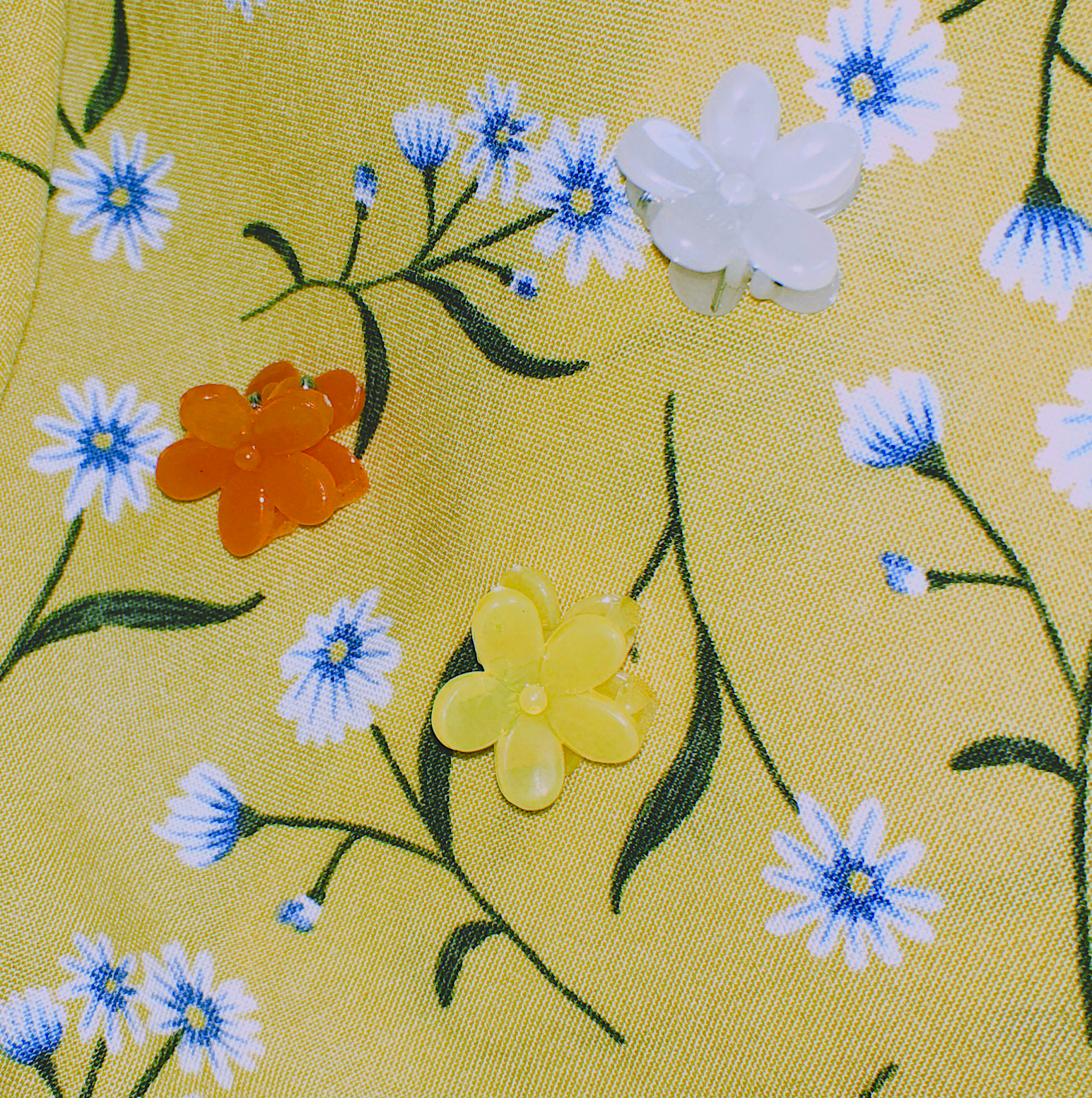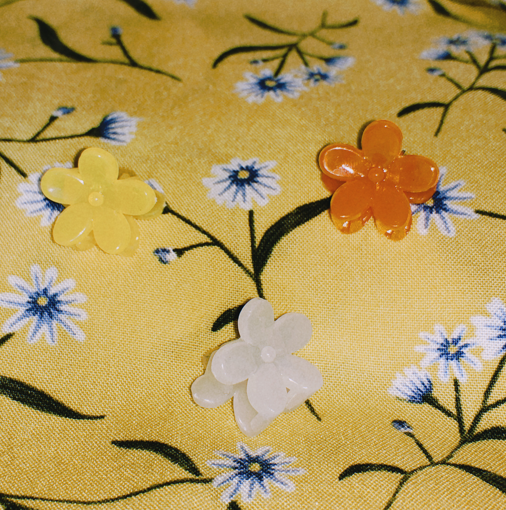 The Sunshine mini clips are a new addition to our retro acetate collection of hair accessories. The trio of sunny daisy flowers gives a 90s pop of colour to any hairdo!