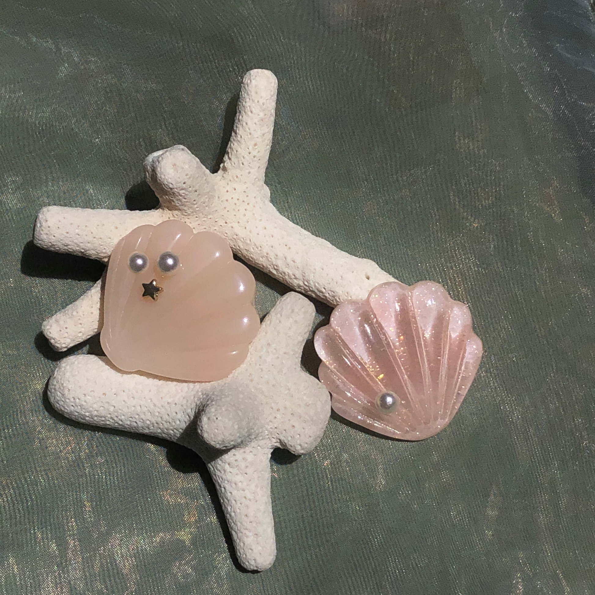 - Acetate scallop shells with crocodile clip backings