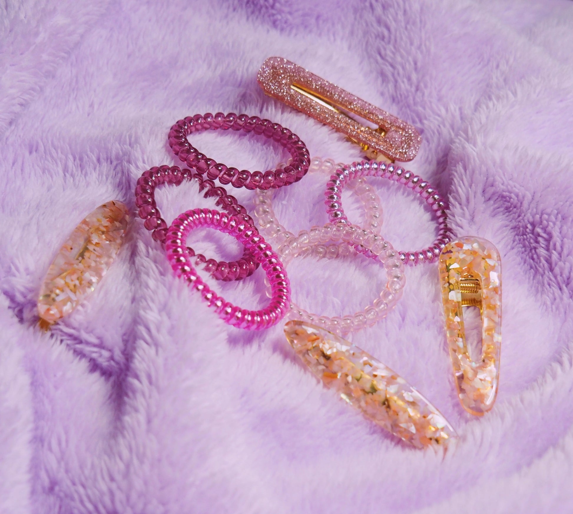 Styles available: Hair Clips & Hair Slides in speckled foil and shell finishes.
