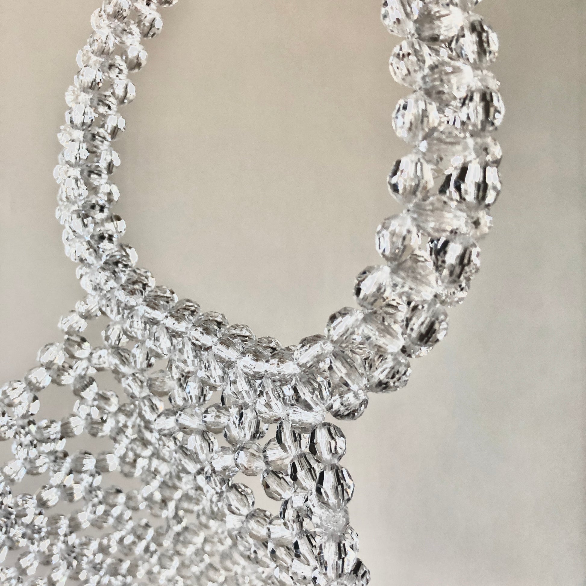 Assembled with crystal clear beads, the Stevie Shopper goes with any outfit, casting a smattering of starlight as you move. The sturdy round top handle fits just right in your hand or in the nook of your arm.