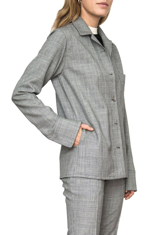 The Houndstooth Toulon Shirt jacket features side seam pockets and tortoise