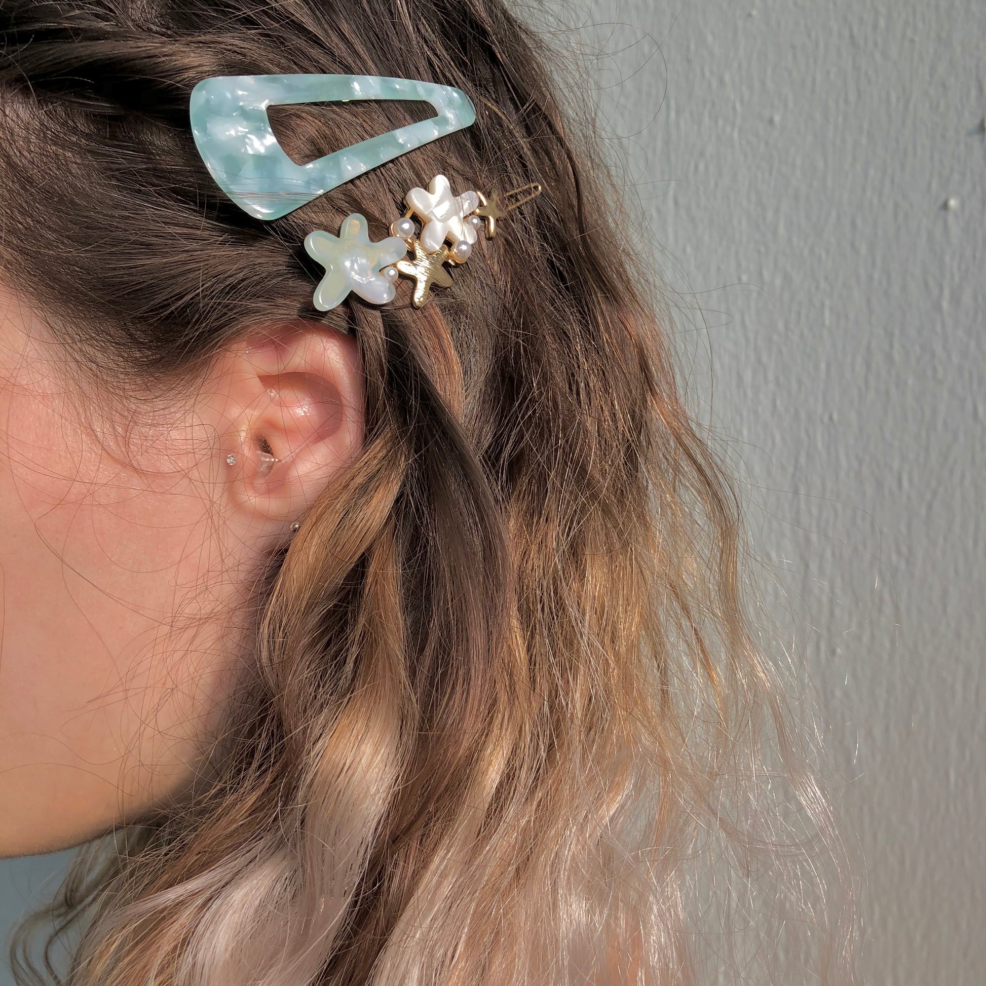 Styles available: Hair Clips & Hair Slides in various marbled finishes.