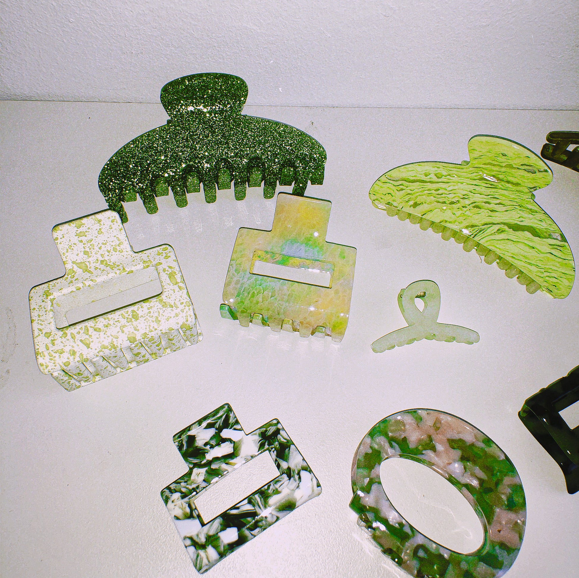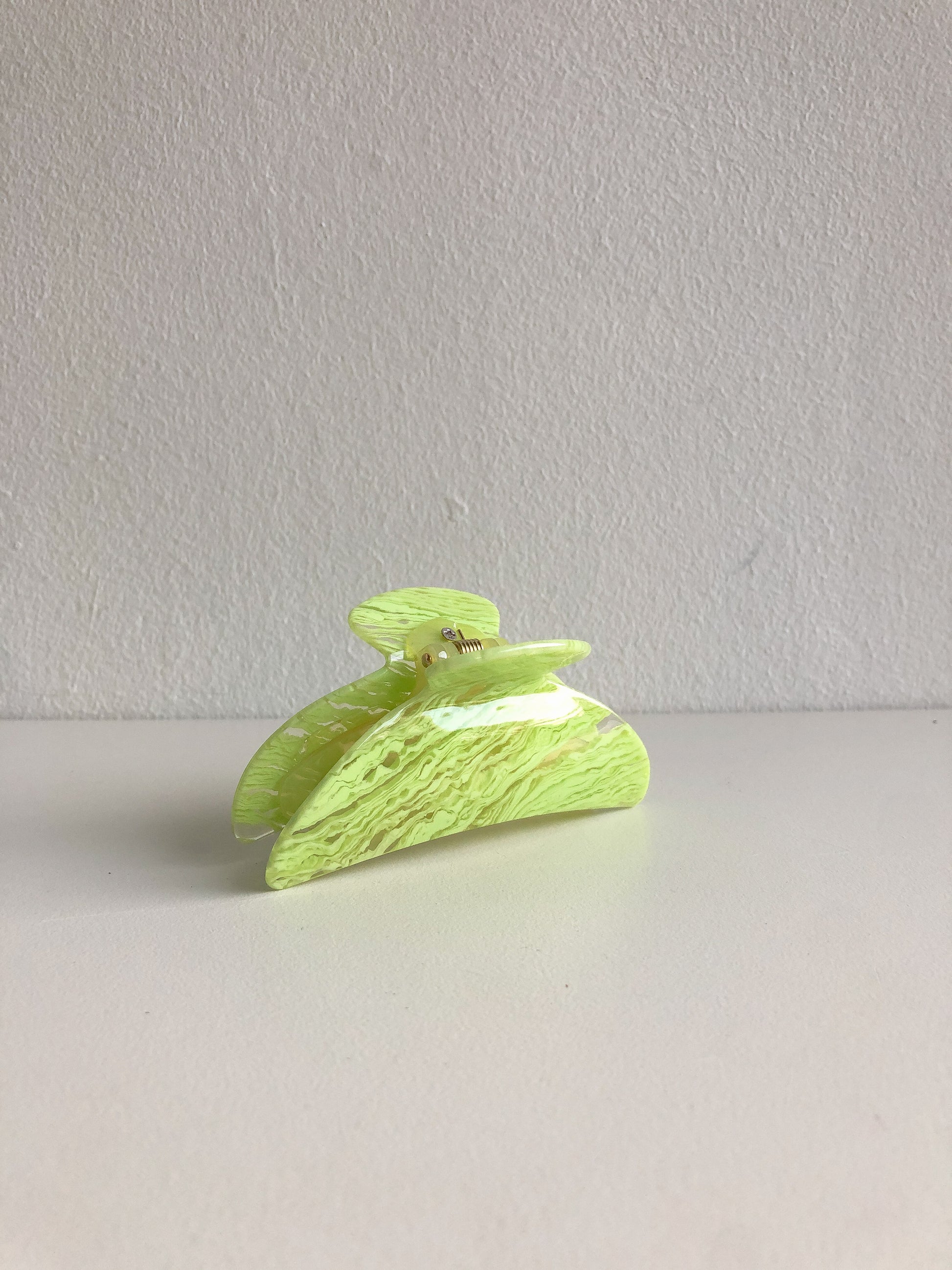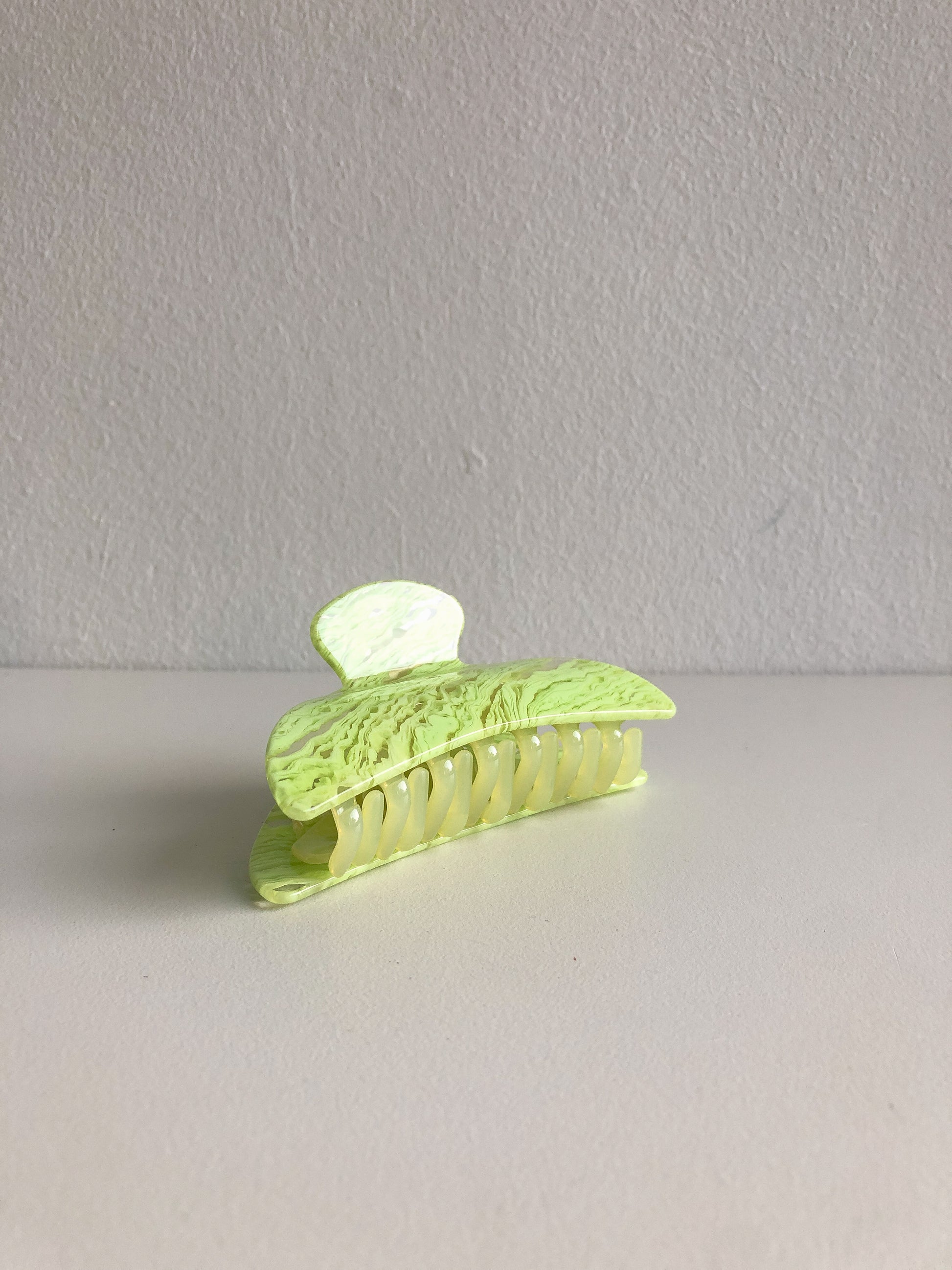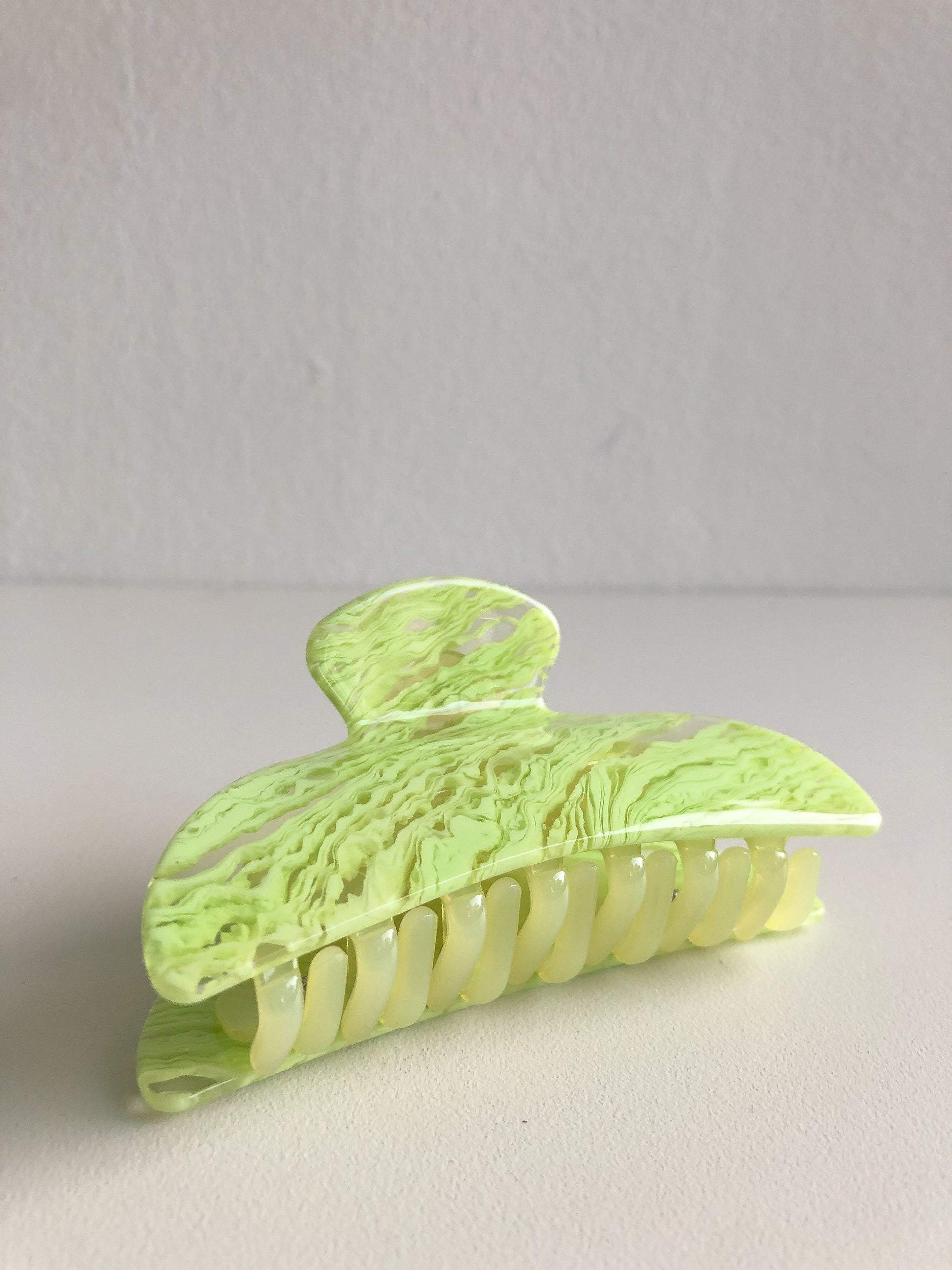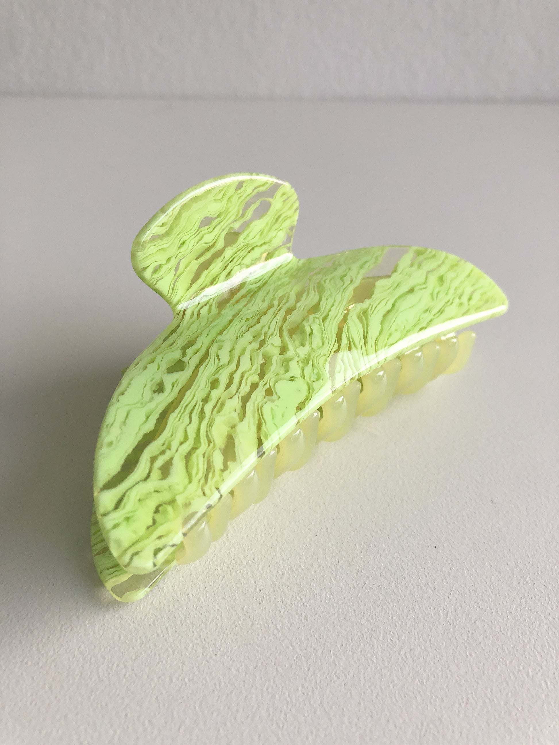 This unique vaporwave inspired hair claw comes with lime green wave patterns across a clear claw clip.