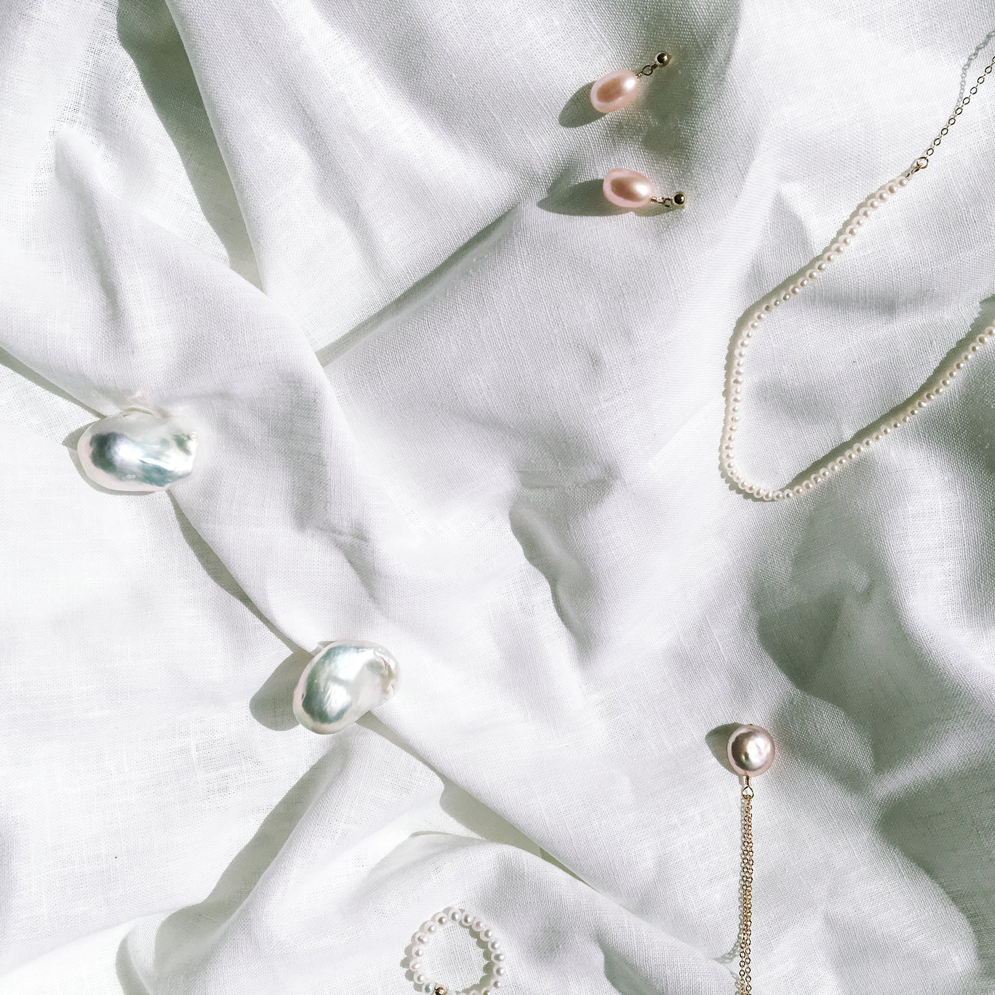 Veronique's first Pearl collection of handmade cultivated pearl accessories including necklaces, rings and earrings.