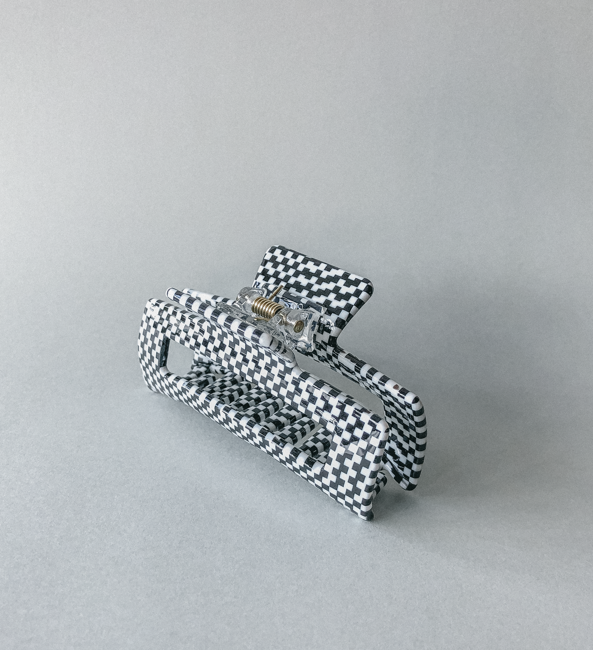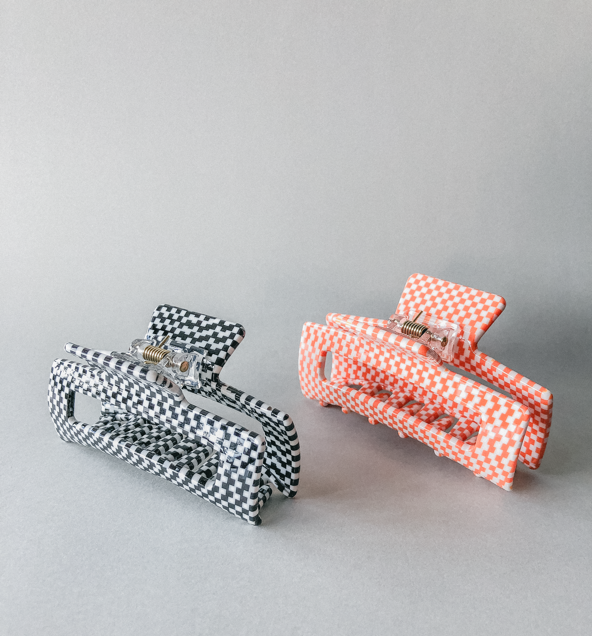 These vintage block hair claws are made of 100% Acetate. 9cm across.