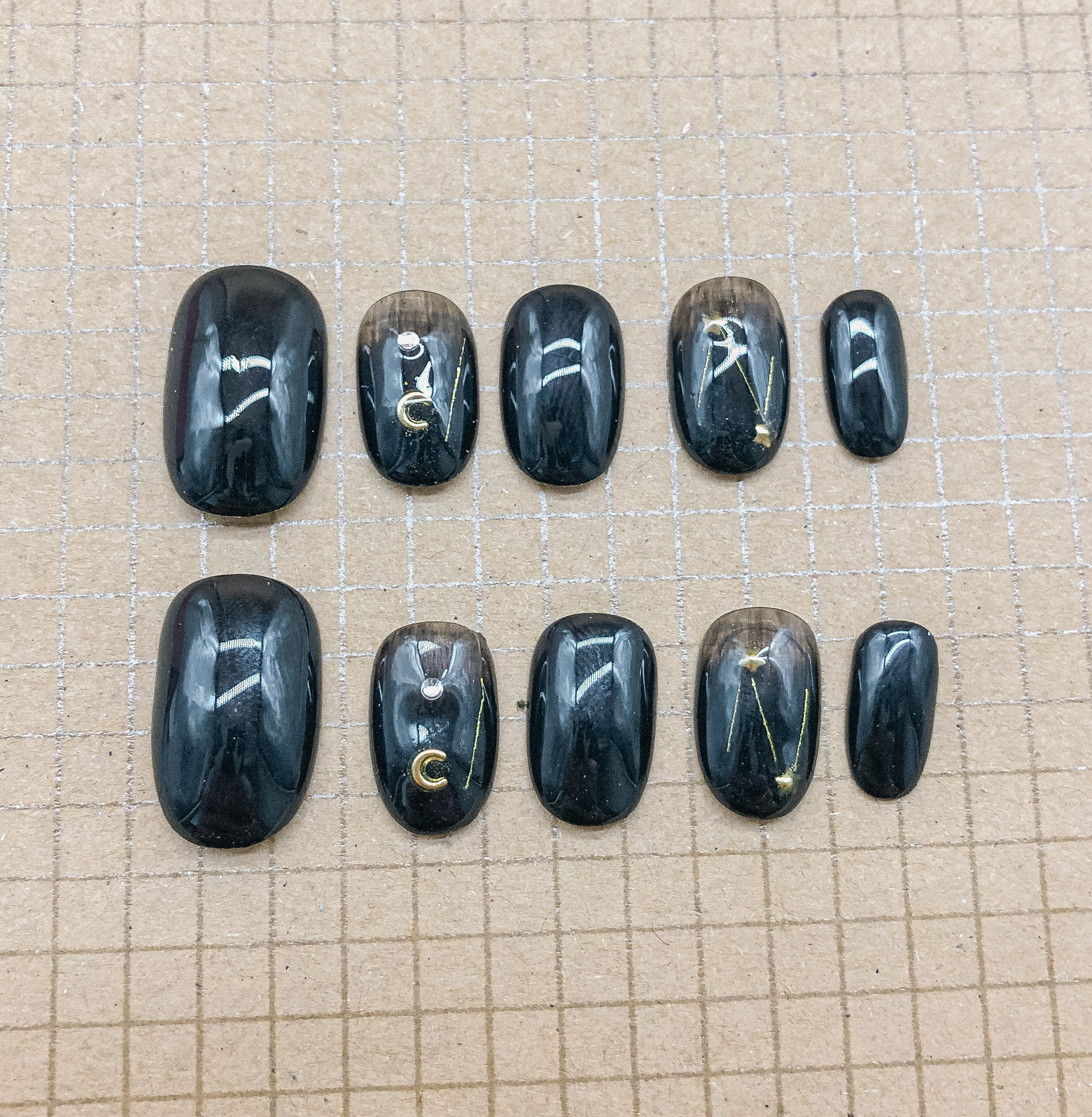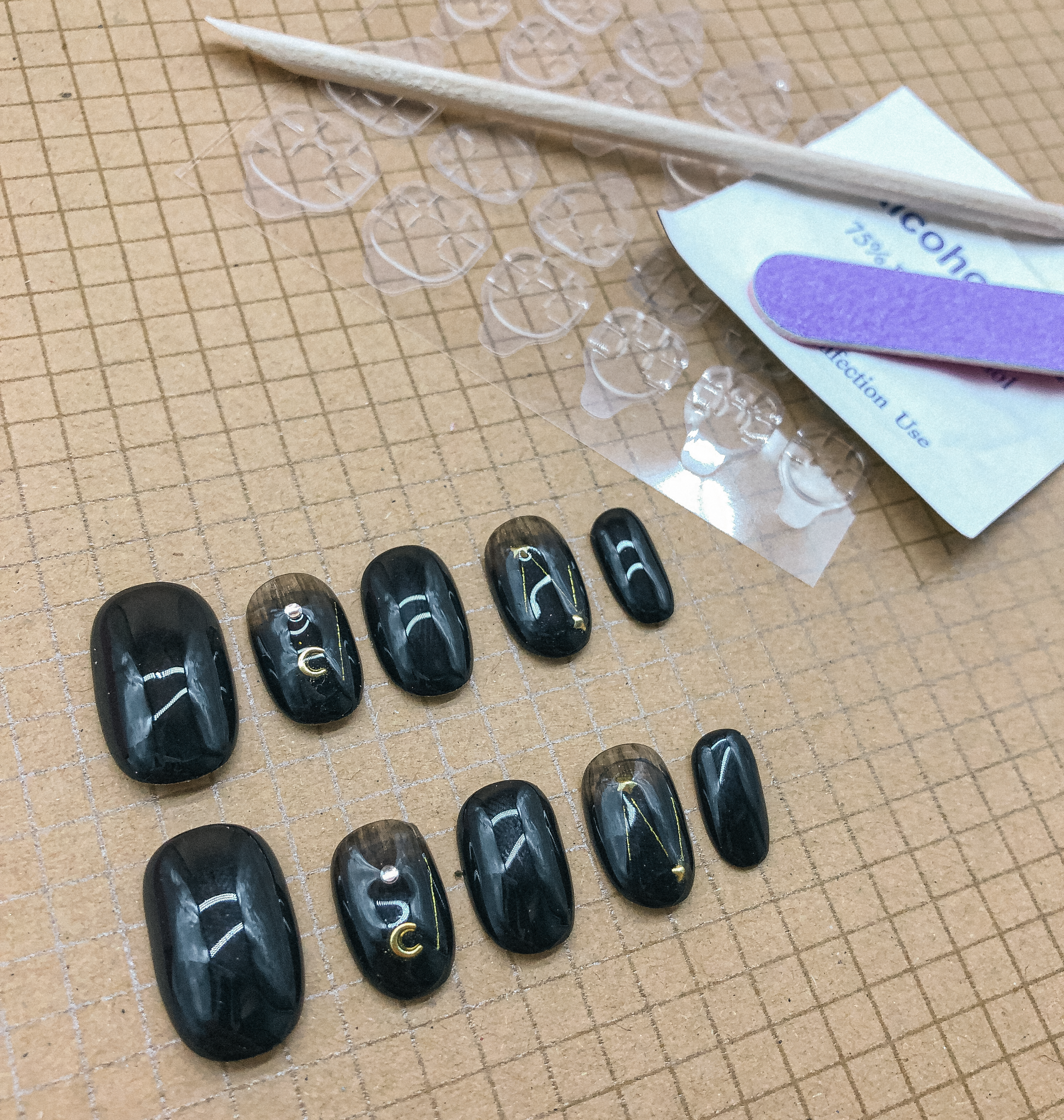 If ordering custom sizes, please send us (info@eomm.co) your sizes in the following order starting with your left hand: pinky, ring, middle, pointer, thumb, right thumb, pointer, middle, ring, pinky. If you do not send an email stating your sizes, please note this will cause a delay in your order as it will be unable to process it without your sizes. Nails will last for up to 2 weeks if applied properly and are REUSABLE if treated properly!