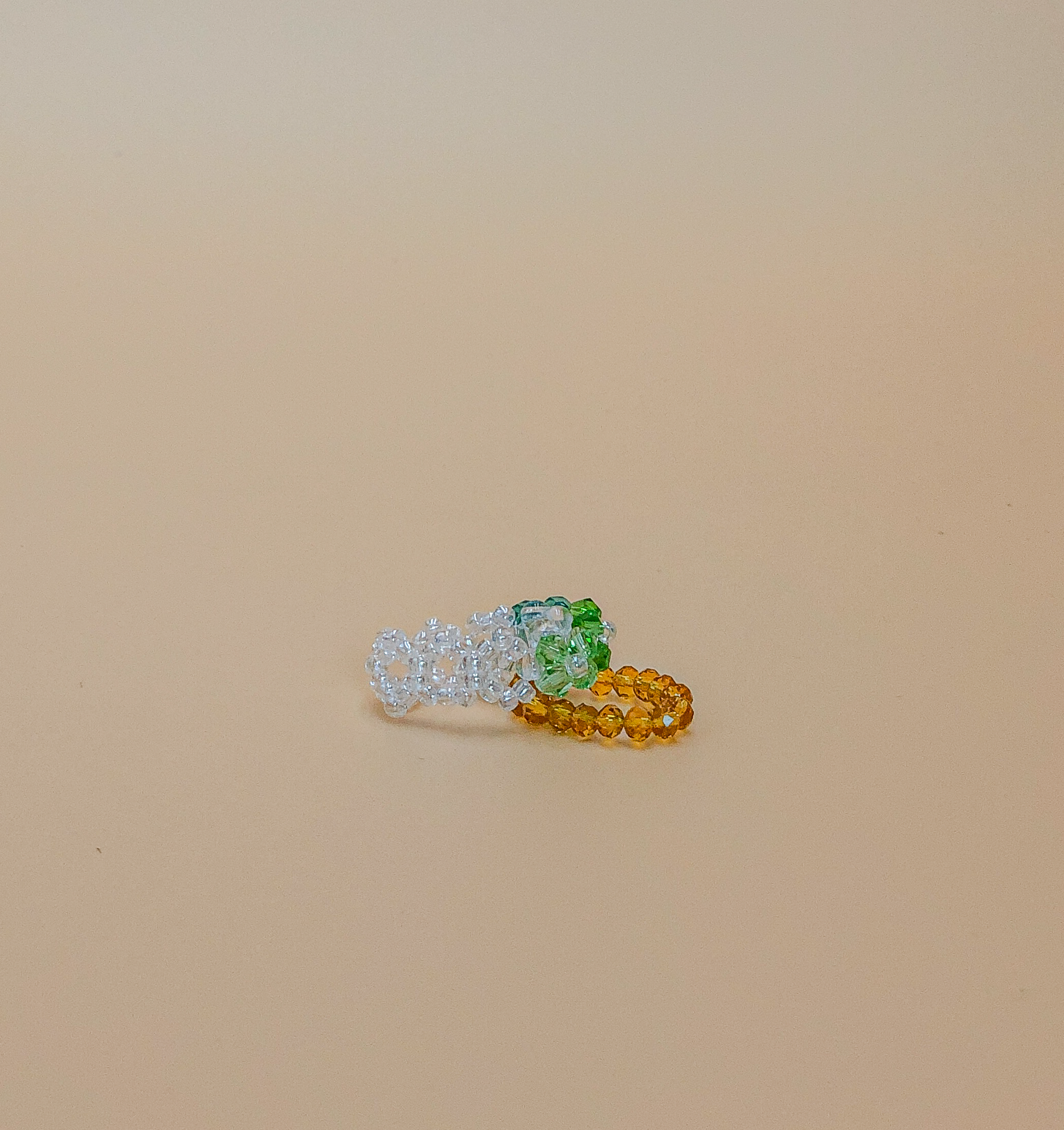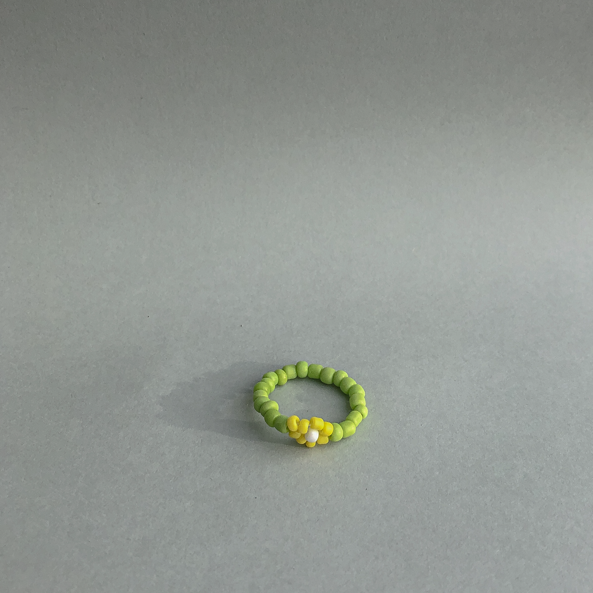 - Daisy: Pastel green beads with a yellow and white daisy flower.